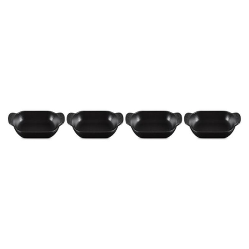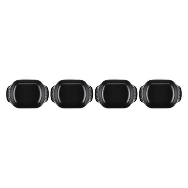O Set com 4 Assadeiras Retangulares Gourmand 13cm foi desenvolvido para quem busca praticidade e elegância ao servir. Com formato retangular e perfil baixo, é ideal para levar do forno à mesa pratos principais individuais, acompanhamentos, massas ou sobremesas. Com design sofisticado e desempenho excepcional, este set combina funcionalidade e estilo, ideal para preparar e servir refeições de forma prática e elegante. - Destaques:• Paredes internas curvas e fundo plano que facilitam o preparo, o servir e a limpeza• Alças exclusivas, maiores e curvadas para cima, que oferecem mais conforto no manuseio• Empilháveis para praticidade na hora de servir, lavar e guardar• Ferro fundido esmaltado com distribuição e retenção de calor superiores, mantendo os alimentos quentes ou frios por mais tempo• Totalmente esmaltada, pronta para usar• Esmalte preto fosco fácil de limpar, resistente a manchas, riscos, lascas, trincas e ferrugem• Desenvolve pátina natural ao longo do tempo, melhorando a performance de cozimento• Segura em todas as fontes de calor, incluindo indução, até 450°C• Compatível com lava-louças residenciais e industriais, e com utensílios de metal - Especificações:• Tamanho: 13cm• Comprimento: 6,3cm• Largura: 4,4cm• Altura: 1,8cm• Material: Ferro Fundido• Fonte de Calor: Vitrocerâmico, Indução, Elétrico, Gás, Radiante, Grill, Forno• Modo de Lavagem: Lava Louças, Lavagem a Mão• País de Origem: França