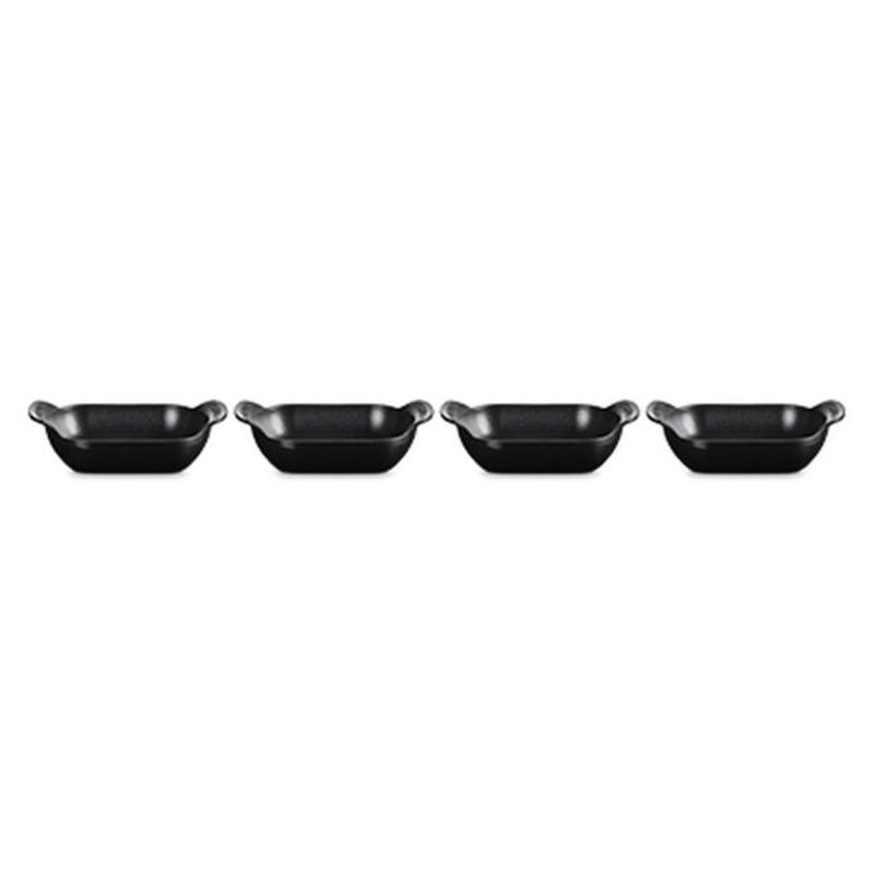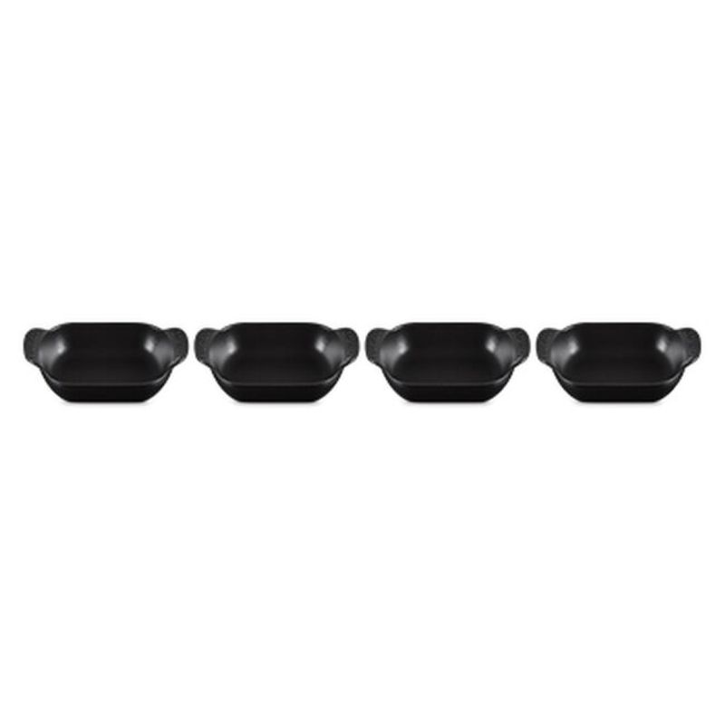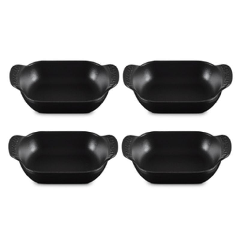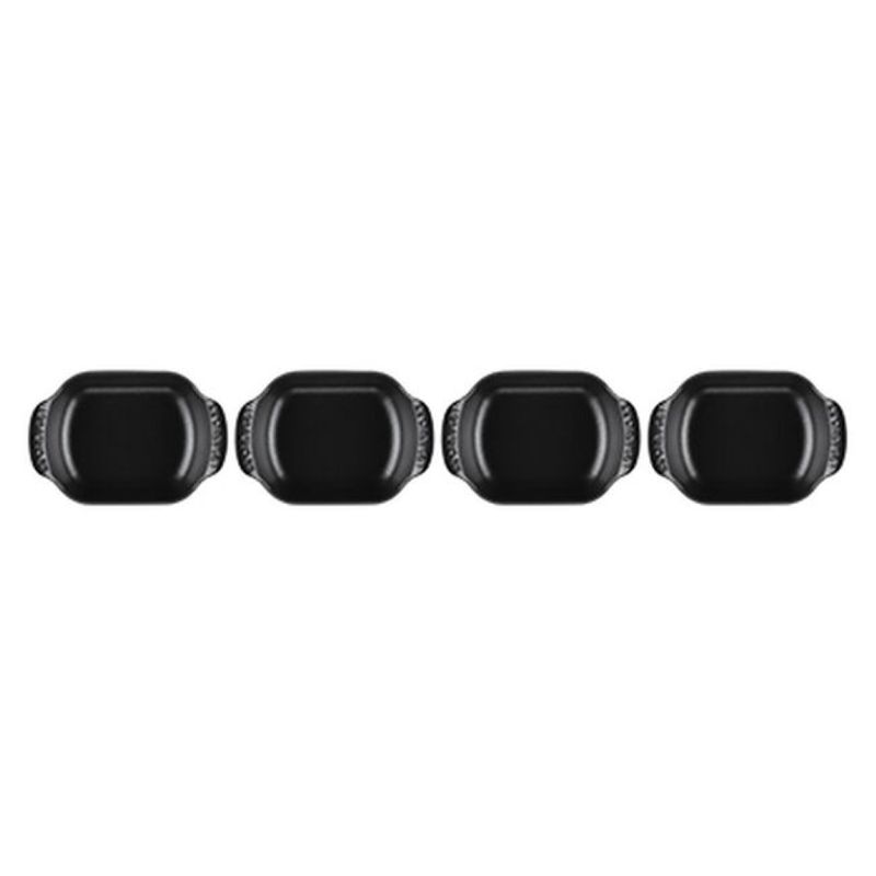 O Set com 4 Assadeiras Retangulares Gourmand 13cm foi desenvolvido para quem busca praticidade e elegância ao servir. Com formato retangular e perfil baixo, é ideal para levar do forno à mesa pratos principais individuais, acompanhamentos, massas ou sobremesas. Com design sofisticado e desempenho excepcional, este set combina funcionalidade e estilo, ideal para preparar e servir refeições de forma prática e elegante. - Destaques:• Paredes internas curvas e fundo plano que facilitam o preparo, o servir e a limpeza• Alças exclusivas, maiores e curvadas para cima, que oferecem mais conforto no manuseio• Empilháveis para praticidade na hora de servir, lavar e guardar• Ferro fundido esmaltado com distribuição e retenção de calor superiores, mantendo os alimentos quentes ou frios por mais tempo• Totalmente esmaltada, pronta para usar• Esmalte preto fosco fácil de limpar, resistente a manchas, riscos, lascas, trincas e ferrugem• Desenvolve pátina natural ao longo do tempo, melhorando a performance de cozimento• Segura em todas as fontes de calor, incluindo indução, até 450°C• Compatível com lava-louças residenciais e industriais, e com utensílios de metal - Especificações:• Tamanho: 13cm• Comprimento: 6,3cm• Largura: 4,4cm• Altura: 1,8cm• Material: Ferro Fundido• Fonte de Calor: Vitrocerâmico, Indução, Elétrico, Gás, Radiante, Grill, Forno• Modo de Lavagem: Lava Louças, Lavagem a Mão• País de Origem: França