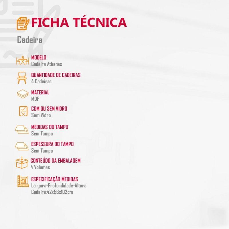 Conjunto Com 4 Cadeiras Athenas Rufato Imbuia/animale ChocolateComplete sua sala de jantar com esse lindo Conjunto com 04 Cadeiras Athenas . Conforto, elegância, deixara seu ambiente completo.Esse conjunto é composto por:04 Cadeiras Athenas :Altura: 102 cmLargura: 42 cmProfundidade: 56 cmInformações Importantes:Os objetos que ambientam as fotos não acompanham o produto.Não disponibilizamos a montagem do produto.O produto acompanha manual de montagem. Não nos responsabilizamos por danos no produto causados por montagem de qualquer outra forma que não seja a descrita no manual.Verifique as dimensões do rótulo e certifique-se que o percurso que ele fará até o local de uso permite sua passagem.Garantia do fornecedor: 3 meses Cor: Imbuia/Animale ChocolateN/A