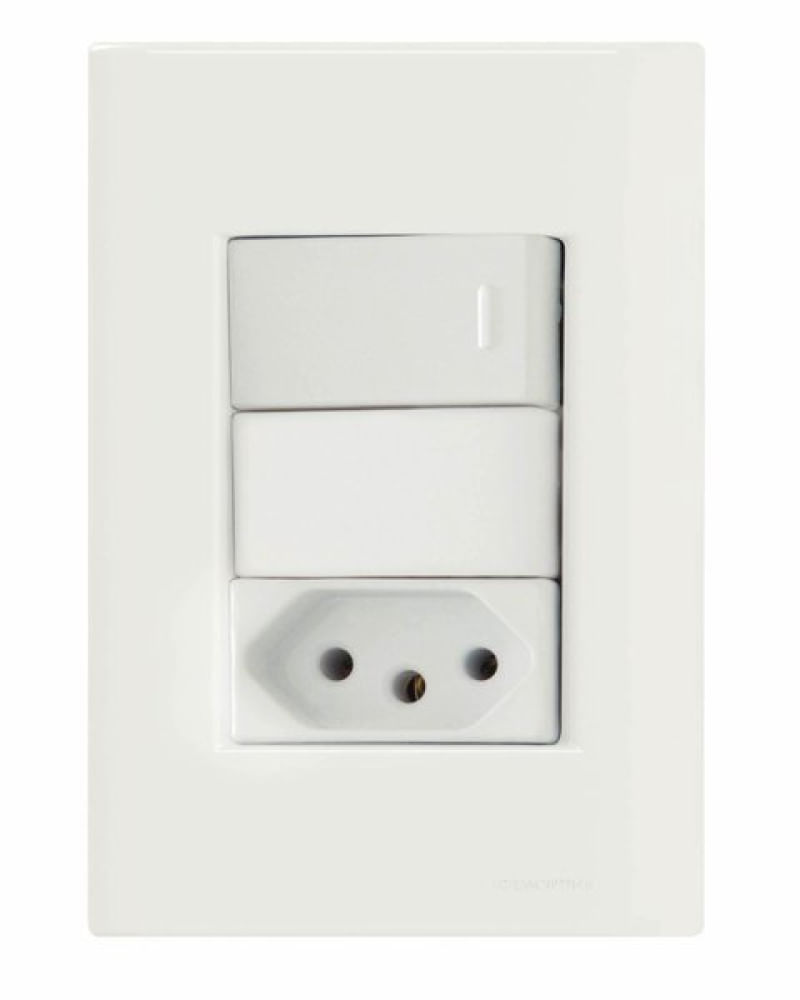 Conjunto 4x2 1 Interruptor Simples 10A 250V 1 Tomada 2P+T 10A 250V Tramontina Giz Branco Tramontina - Características Gerais do Produto: • Conjunto completo ou Módulo: Conjunto completo • Cor: Branco • Tipo / Função: Tomada + Interruptor • Quantidade de Tomadas: 1 • Quantidade de Interruptores: 1 • Tipo de interruptor: Interruptor Simples • Corrente (A): 10A Garantia: • 1 Ano