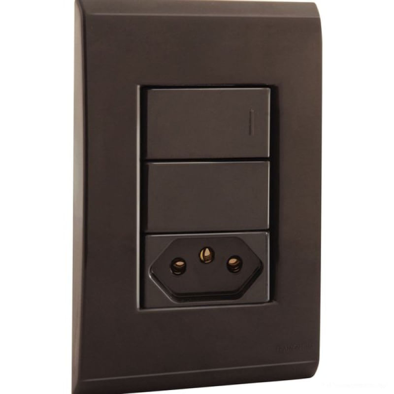 Conjunto 4x2 1 Interruptor Simples 10A 250V 1 Tomada 2P+T 10A 250V Tramontina Liz Grafite Tramontina - Características Gerais do Produto: • Conjunto completo ou Módulo: Conjunto completo • Cor: Grafite • Tipo / Função: Tomada + Interruptor • Quantidade de Tomadas: 1 • Quantidade de Interruptores: 1 • Tipo de interruptor: Interruptor Simples • Corrente (A): 10A Garantia: • 10 Anos