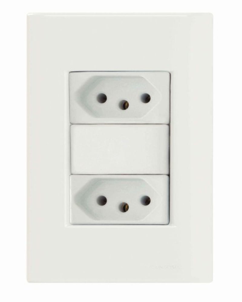 Conjunto 4x2 2 Tomadas 2P+T 10A 250V Tramontina Giz Branco Tramontina - Características Gerais do Produto: • Conjunto completo ou Módulo: Conjunto completo • Cor: Branco • Tipo / Função: Tomada • Quantidade de Tomadas: 2 • Corrente (A): 10A Garantia: • 1 Ano