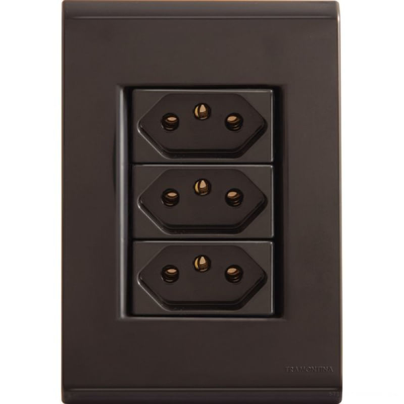 Conjunto 4x2 3 Tomadas 2P+T 10A 250V Tramontina Liz Grafite Tramontina - Características Gerais do Produto: • Conjunto completo ou Módulo: Conjunto completo • Cor: Grafite • Tipo / Função: Tomada • Quantidade de Tomadas: 3 • Corrente (A): 10A Garantia: • 10 Anos