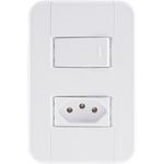 Conjunto 4x2 com 1 Interruptor Simples 10 A 250 V e 1 Tomada 2P T 10 A 250 V Tramontina Tablet Branco <br><br> Utilize o Conjunto 4x2 com 1 Interruptor Simples 10 A 250 V e 1 Tomada 2P T 10 A 250 V Tramontina Tablet Branco e tenha um item completo para ligar equipamentos elétricos e eletrônicos e ainda acender as luzes do ambiente. Produzido em termoplástico com acabamento brilho na cor branca, ele possui sistema modular com o suporte incorporado e furo oblongo que facilita a fixação e a regulagem da placa à parede, deixando-a reta; além disso, sua instalação não fica aparente, o que deixa seu cômodo ainda mais bonito. O conjunto perfeito para sua casa e que acompanha parafusos para a instalação. <br><br> .<br>