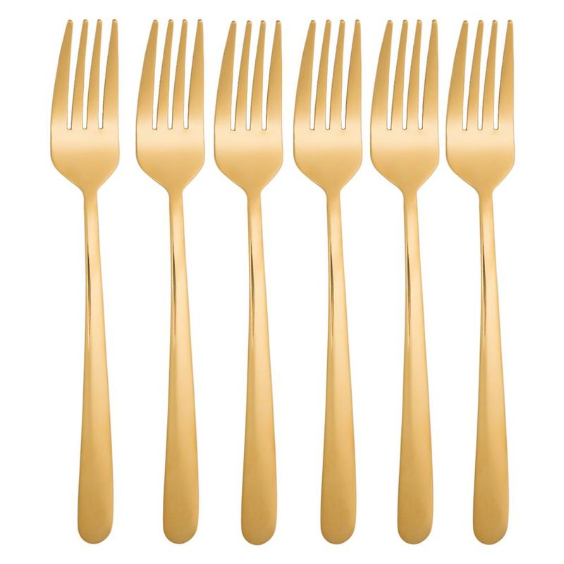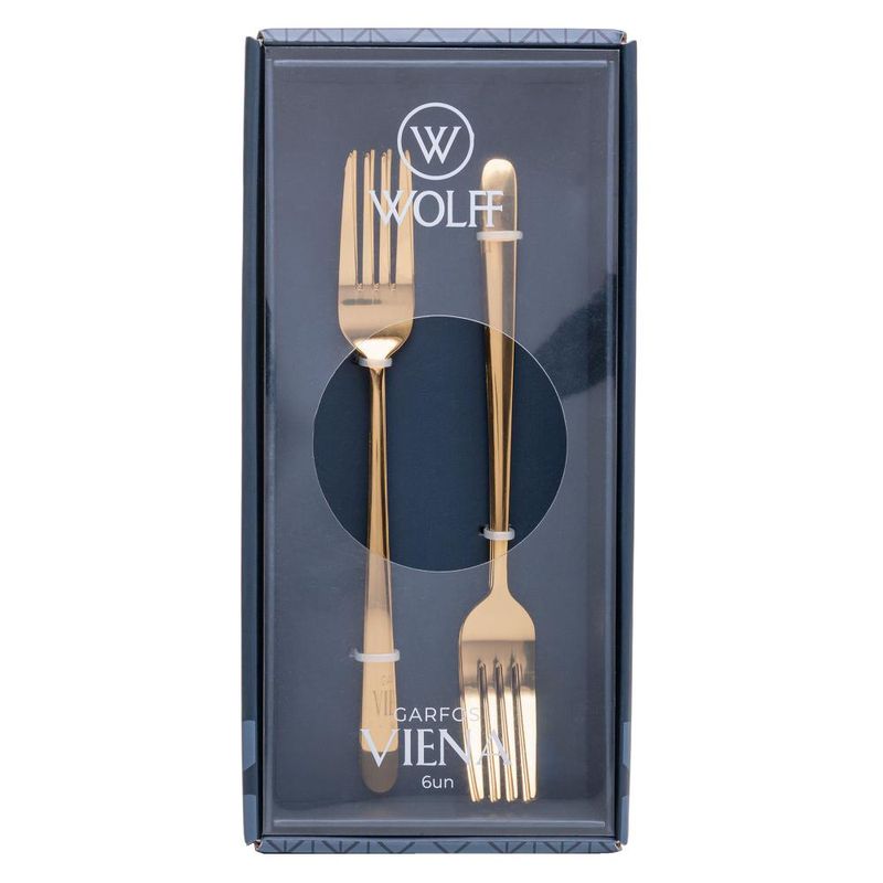 Conjunto 6 Garfos para Mesa Viena Dourado Aço Inox WolffElegância que transforma cada refeição em celebração. O conjunto de garfos Viena Dourado da Wolff combina acabamento sofisticado com a resistência do aço inox, ideal para compor mesas que impressionam.Elegância que transforma cada refeição em celebração. O conjunto de garfos Viena Dourado da Wolff combina acabamento sofisticado com a resistência do aço inox, ideal para compor mesas que impressionam.• Aço inox de alta qualidadeDurabilidade e resistência para o uso diário.• Acabamento douradoToque de luxo que valoriza qualquer composição.• Design clássicoLinhas elegantes que harmonizam com diferentes estilos de mesa posta.• VersatilidadePerfeito para almoços refinados e jantares especiais.Sirva com classe e brilho. A Wolff traduz tradição e bom gosto em cada detalhe da sua mesa.Contém: 6 Garfos para MesaMedidas Produto: Altura 2,50cm x Largura 2,50cm x Comprimento 21,00cmPeso: 0,34KgLavar com detergente neutro, esponja macia e secar imediatamente.
