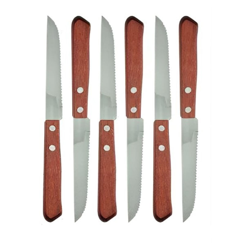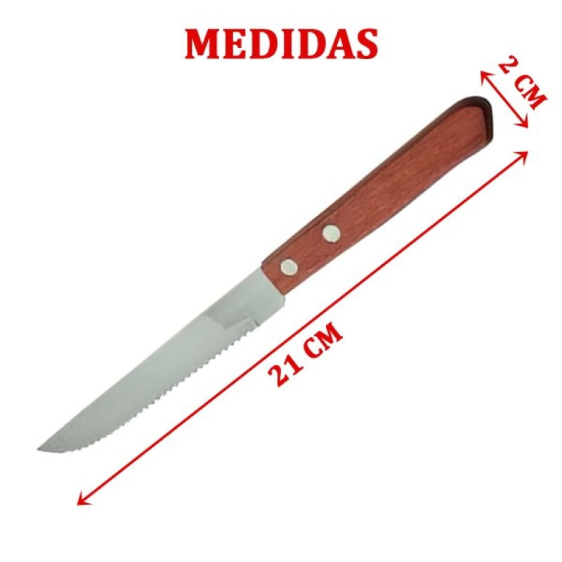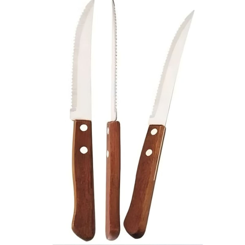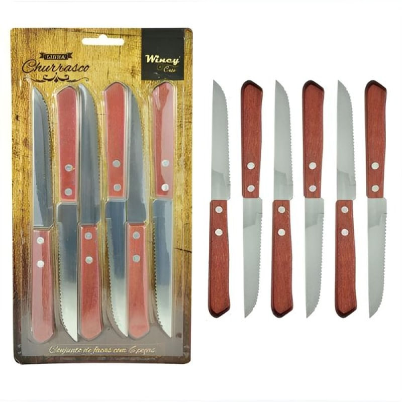 Conjunto 6pçs Facas Churrasco Cabo Madeira Aço Inoxidável - Transforme Suas Refeições com Nossos Talheres Elegantes! Descubra a coleção premium de talheres que traz elegância e sofisticação para sua mesa. Com design moderno e materiais de alta qualidade, nossos talheres são perfeitos para todas as ocasiões, desde jantares especiais até refeições do dia a dia. Talheres de aço inoxidável resistente, Durabilidade e resistência, Design ergonômico e confortável, Fácil de limpar e manter e Perfeito para presentes! ESPECIFICAÇÕES: MATERIAL: Aço Inox e Madeira; COR: Prata e Marrom; MEDIDAS: 21cm X 2cm; CONTEÚDO DA EMBALAGEM: 1 Conjunto De 6 Peças De Facas; Características Gerais do Produto: • Material: Madeira; Aço Inox • Modelo: Faca Para Churrasco • Cor: Marrom; Prata • Dimensões aproximadas: Altura 21cm X Largura 2cm Garantia: • Garantia contra avarias no transporte