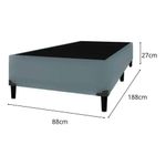 Conjunto Box Solteiro Itaflex Colchão Gazin 41x88x188 CinzaO Conjunto Colchao Supreme D33 Gazin com Base Box Itaflex e a solucao ideal para quem busca conforto, resistencia e excelente suporte para noites de sono mais tranquilas. O colchao e produzido com espuma D33, garantindo firmeza na medida certa, sustentacao equilibrada e alta durabilidade. Seu tamanho 88x188x14 e perfeito para quem procura um colchao de solteiro confiavel e confortavel para uso diario.A Base Box Itaflex complementa o conjunto com estrutura reforcada, revestimento em veludo premium, toque macio e acabamento de alto padrao. Seu tamanho 0,79x1,98x0,30 oferece estabilidade e elevacao ideal para o colchao, proporcionando maior conforto e elegancia ao ambiente. Juntos, colchao e base formam um kit que une praticidade, estilo e excelente custo-beneficio.Entre os diferenciais estao a espuma de alta densidade, o acabamento resistente, o design elegante e a durabilidade superior. E um kit perfeito para quem deseja um conjunto completo, bonito e funcional. Para prolongar sua vida util, recomenda-se manter o colchao arejado, gira-lo conforme orientacao do fabricante e evitar exposicao prolongada a umidade.Item: ColchaoMarca: GazinModelo: SupremeTipo de Colchao: EspumaNivel de Conforto: FirmeTecido do Revestimento: Poliester de alta resistenciaTipo de Tecido: Malha (superior) / Poliester (lateral)Tratamentos do Tecido: Antiacaro, Antialergico, AntifungoBordado: Bordado continuoEstabilidade: AltaSuporte de Peso Indicado: Ate 100 kg por pessoaCertificacoes: INMETROTecnologia da Espuma: Espuma Convencional D33Respirabilidade: Alta, com tecido que auxilia na ventilacao internaDurabilidade da Espuma: Alta densidade com maior vida utilItem: Base BoxMarca: ItaflexEstrutura Interna: Madeira de reflorestamento tratadaRevestimento Externo: Veludo premiumTipo de Veludo: Veludo de toque macio, resistente e sofisticadoPes: PVC resistenteQuantidade de Pes: 6 pesAltura dos Pes: 12 cm (media de mercado)Estabilidade: AltaAcabamento Interno: TNTResistencia Estrutural: Suporta ate 120 kg (aprox.)Fixacao dos Pes: RosqueaveisDesign: Moderno e eleganteAcabamento: PremiumDimensoes do colchao:Altura: 14 cmLargura: 88 cmProfundidade: 188 cmPeso: 12 KgDimensoes da Base Box:Altura: 27 cmLargura: 88 cmProfundidade: 188 cmPeso: 35,1 Kg