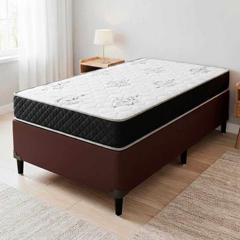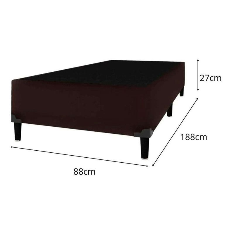Conjunto Box Solteiro Itaflex Colchão Gazin 41x88x188 MarromO Conjunto Colchao Supreme D33 Gazin com Base Box Itaflex e a solucao ideal para quem busca conforto, resistencia e excelente suporte para noites de sono mais tranquilas. O colchao e produzido com espuma D33, garantindo firmeza na medida certa, sustentacao equilibrada e alta durabilidade. Seu tamanho 88x188x14 e perfeito para quem procura um colchao de solteiro confiavel e confortavel para uso diario.A Base Box Itaflex complementa o conjunto com estrutura reforcada, revestimento em veludo premium, toque macio e acabamento de alto padrao. Seu tamanho 0,79x1,98x0,30 oferece estabilidade e elevacao ideal para o colchao, proporcionando maior conforto e elegancia ao ambiente. Juntos, colchao e base formam um kit que une praticidade, estilo e excelente custo-beneficio.Entre os diferenciais estao a espuma de alta densidade, o acabamento resistente, o design elegante e a durabilidade superior. E um kit perfeito para quem deseja um conjunto completo, bonito e funcional. Para prolongar sua vida util, recomenda-se manter o colchao arejado, gira-lo conforme orientacao do fabricante e evitar exposicao prolongada a umidade.Item: ColchaoMarca: GazinModelo: SupremeTipo de Colchao: EspumaNivel de Conforto: FirmeTecido do Revestimento: Poliester de alta resistenciaTipo de Tecido: Malha (superior) / Poliester (lateral)Tratamentos do Tecido: Antiacaro, Antialergico, AntifungoBordado: Bordado continuoEstabilidade: AltaSuporte de Peso Indicado: Ate 100 kg por pessoaCertificacoes: INMETROTecnologia da Espuma: Espuma Convencional D33Respirabilidade: Alta, com tecido que auxilia na ventilacao internaDurabilidade da Espuma: Alta densidade com maior vida utilItem: Base BoxMarca: ItaflexEstrutura Interna: Madeira de reflorestamento tratadaRevestimento Externo: Veludo premiumTipo de Veludo: Veludo de toque macio, resistente e sofisticadoPes: PVC resistenteQuantidade de Pes: 6 pesAltura dos Pes: 12 cm (media de mercado)Estabilidade: AltaAcabamento Interno: TNTResistencia Estrutural: Suporta ate 120 kg (aprox.)Fixacao dos Pes: RosqueaveisDesign: Moderno e eleganteAcabamento: PremiumDimensoes do colchao:Altura: 14 cmLargura: 88 cmProfundidade: 188 cmPeso: 12 KgDimensoes da Base Box:Altura: 27 cmLargura: 88 cmProfundidade: 188 cmPeso: 35,1 Kg