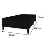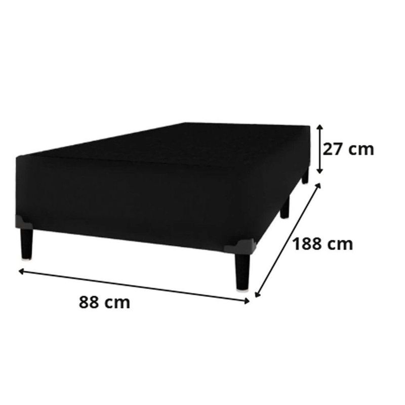 Conjunto Box Solteiro Itaflex Colchão Gazin 41x88x188 PretoO Conjunto Colchao Supreme D33 Gazin com Base Box Itaflex e a solucao ideal para quem busca conforto, resistencia e excelente suporte para noites de sono mais tranquilas. O colchao e produzido com espuma D33, garantindo firmeza na medida certa, sustentacao equilibrada e alta durabilidade. Seu tamanho 88x188x14 e perfeito para quem procura um colchao de solteiro confiavel e confortavel para uso diario.A Base Box Itaflex complementa o conjunto com estrutura reforcada, revestimento em veludo premium, toque macio e acabamento de alto padrao. Seu tamanho 0,79x1,98x0,30 oferece estabilidade e elevacao ideal para o colchao, proporcionando maior conforto e elegancia ao ambiente. Juntos, colchao e base formam um kit que une praticidade, estilo e excelente custo-beneficio.Entre os diferenciais estao a espuma de alta densidade, o acabamento resistente, o design elegante e a durabilidade superior. E um kit perfeito para quem deseja um conjunto completo, bonito e funcional. Para prolongar sua vida util, recomenda-se manter o colchao arejado, gira-lo conforme orientacao do fabricante e evitar exposicao prolongada a umidade.Item: ColchaoMarca: GazinModelo: SupremeTipo de Colchao: EspumaNivel de Conforto: FirmeTecido do Revestimento: Poliester de alta resistenciaTipo de Tecido: Malha (superior) / Poliester (lateral)Tratamentos do Tecido: Antiacaro, Antialergico, AntifungoBordado: Bordado continuoEstabilidade: AltaSuporte de Peso Indicado: Ate 100 kg por pessoaCertificacoes: INMETROTecnologia da Espuma: Espuma Convencional D33Respirabilidade: Alta, com tecido que auxilia na ventilacao internaDurabilidade da Espuma: Alta densidade com maior vida utilItem: Base BoxMarca: ItaflexEstrutura Interna: Madeira de reflorestamento tratadaRevestimento Externo: Veludo premiumTipo de Veludo: Veludo de toque macio, resistente e sofisticadoPes: PVC resistenteQuantidade de Pes: 6 pesAltura dos Pes: 12 cm (media de mercado)Estabilidade: AltaAcabamento Interno: TNTResistencia Estrutural: Suporta ate 120 kg (aprox.)Fixacao dos Pes: RosqueaveisDesign: Moderno e eleganteAcabamento: PremiumDimensoes do colchao:Altura: 14 cmLargura: 88 cmProfundidade: 188 cmPeso: 12 KgDimensoes da Base Box:Altura: 27 cmLargura: 88 cmProfundidade: 188 cmPeso: 35,1 Kg