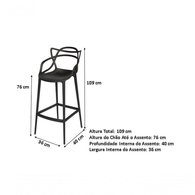 Conjunto C/4 Banqueta Allegra Alta Master Preta Cozinha Americana Balcão PolipropilenoModelo: Banqueta Allegra MasterCom design moderno a banqueta allegra é ideal para decorar qualquer ambiente. A banqueta possui encosto vazado e descanso para os pés, prática e confortável. Ideal para deixar a sua bancada de alimentação ou bar mais moderna.Garantia de 3 meses por de fabricação.Altura Total: 109 cmAltura do Chão Até o Assento: 76 cmProfundidade Interna do Assento: 40 cmLargura Interna do Assento: 36 cmPeso Máx. Recomendado: 120 kgsPeso unitário: 4,6 kgsNão GiratóriaNão DobrávelNão EmpilhavelIndicações de Uso:- Não utilizar produtos químicos e abrasivos para limpeza- Limpar com pano umedecido e sabão neutro para melhor conservação- Deve ser evitada exposição dos produtos ao sol pois podem apresentar pequenas mudanças em sua coloração.Observações importantes:- Produto NÃO necessita de montagem- Pode haver alguma diferença de tonalidade entre a imagem e o produto real, por conta do tratamento de imagens e a calibração de cores do seu monitor.- Ao receber a mercadoria, o cliente deve verificar as condições da embalagem, caso haja alguma não assine o de .
