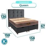 Conjunto Cama Box Bau Blindado Queen + Colchão D26 Ortophedic Sankonfort + CabeceiraConjunto Queen Colchão Ortophedic + Cama Box BauColchão Queen com 25cm de altura, proporcionando mais conforto e presençaRevestimento em poliéster durável, com toque agradável e fácil manutençãoSuporta até 120kg, ideal para uso frequente com firmeza equilibradaBase baú Queen com 42cm de altura e amplo espaço interno para organizaçãoRevestimento em Veludo , fácil de limpar e com visual modernoEstrutura reforçada com capacidade para até 150KgFicha Técnica Colchão:Modelo: OrtophedicMarca: SankonfortTamanho: QueenTecido: PoliésterLargura: 158cmComprimento: 188cmAltura: 25cmSuporte de Peso: 120KgGarantia: 3 MesesFicha Técnica Cama Box Bau:Modelo: EliteMarca: NatureTamanho: QueenTecido: VeludoLargura: 158cmComprimento: 198cmAltura: 35cmAltura dos Pés: 7cmMaterial dos Pés: MadeiraSuporte de Peso: 150KgPeso: 40KgGarantia: 3 MesesAtenção:Antes da compra certifique-se de que o produto passa por elevadores, portas e corredores.As transportadoras não realizam entregas por escadas ou içamentos.Caso o item não caiba no elevador, a entrega será considerada concluída no térreo do prédio.A cor e tonalidade do produto pode variar de acordo com o dispositivo que o usuário está acessando.