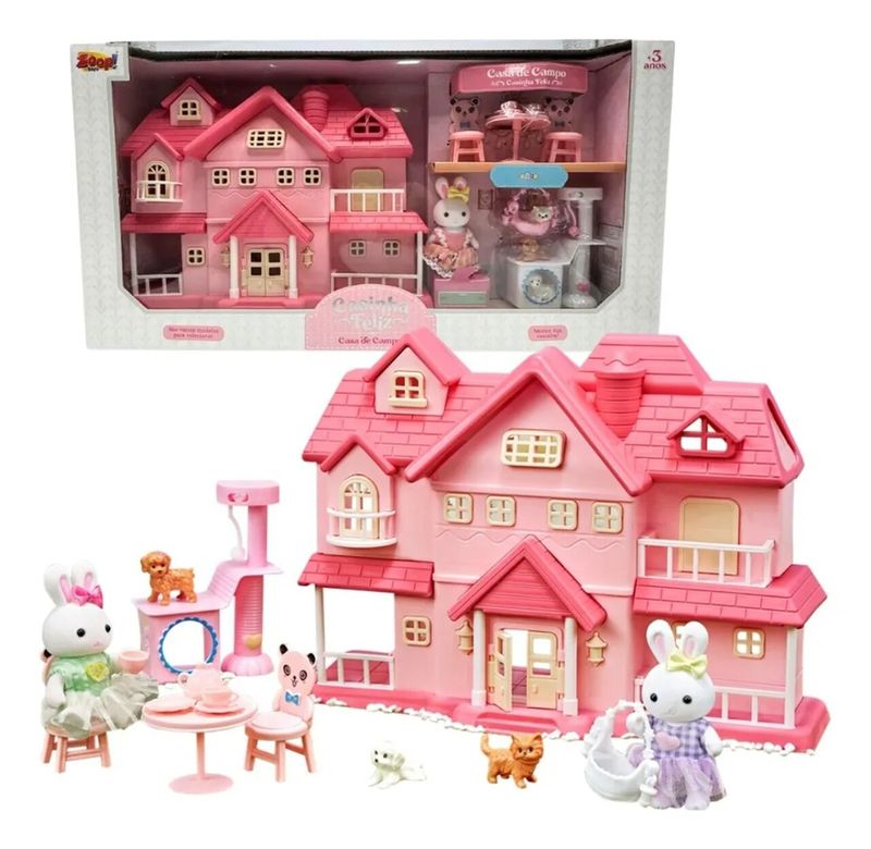 -CASA DE BONECAS: Casa de campo rosa em miniatura com vários cômodos, janelas funcionais e telhados detalhados para brincadeiras encantadoras -CONJUNTO COMPLETO: Inclui duas adoráveis coelhinhas com roupas variadas, perfeitas para criar histórias divertidas -MÓVEIS INCLUSOS: Acompanha mesa redonda com tampo branco, cadeiras e diversos acessórios para decorar cada ambiente da casa -DESIGN DETALHADO: Acabamento cuidadoso em tons de rosa, com portas, janelas e elementos arquitetônicos que estimulam a imaginação -BRINQUEDO EDUCATIVO: Ideal para desenvolver habilidades sociais, criatividade e coordenação motora através da brincadeira de faz de conta Características: Marca - Zoop Toys Cód. ZP01365 ROUPINHAS DAS BONECAS SÃO DE CORES SORTIDAS