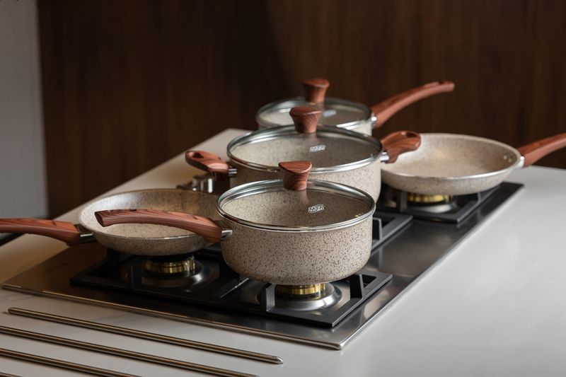 CONJUNTO CERAMICFLON MTA 2018 BAUNILHA 5 PEÇAS antiaderência superior, controle total e design que valoriza sua cozinha Cansou de panelas que grudam e dão trabalho na hora de limpar? Transforme sua rotina com o Ceramicflon MTA 2018 Baunilha: cozimento rápido e uniforme, limpeza descomplicada e um visual moderno que eleva o padrão da sua cozinha — todos os dias. Benefícios que fazem diferença no seu dia a dia Revestimento Ceramicflon (antiaderente com partículas cerâmicas): alimentos deslizam sem esforço, você usa menos óleo e ganha limpeza rápida após o preparo. Mais praticidade e refeições mais leves. Cozimento eficiente: aquecimento rápido e por igual, reduzindo tempo na cozinha e garantindo ponto perfeito — do refogado delicado ao ensopado encorpado. Durabilidade e qualidade: corpo com espessura superior de 2,0 mm, pensado para resistência e longa vida útil no uso diário. Conforto e segurança: cabos e alças com revestimento soft‑touch amadeirado oferecem pegada firme e confortável, trazendo segurança no manuseio. Controle visual do preparo: tampas de vidro temperado com saída para vapor permitem acompanhar o cozimento sem abrir, mantendo a umidade e o sabor. Saúde em primeiro lugar: livre de PFOA, para você cozinhar com mais tranquilidade. Design moderno: acabamento Baunilha elegante que combina com qualquer estilo de cozinha e valoriza sua bancada. Orgulho nacional: Fabricado no Brasil, com tecnologia local e padrão de qualidade que você confia. Versatilidade que cobre suas receitas favoritas (5 peças) Olla com tampa Nº 20 Frigideira francesa Nº 24 Panela Nº 18 com tampa Caçarola Nº 22 com tampa Frigideira francesa Nº 22 Um conjunto completo para fritar, selar, refogar, cozinhar e finalizar com praticidade — do café da manhã ao jantar especial. Atenção: este conjunto não é compatível com fogões de indução. Pronto para elevar sua experiência na cozinha Leve para casa o CONJUNTO CERAMICFLON MTA 2018 BAUNILHA 5 PEÇAS e redescubra o prazer de cozinhar com antiaderência excepcional, controle total e beleza em cada preparo. Adquira agora e transforme suas refeições com praticidade, saúde e estilo.