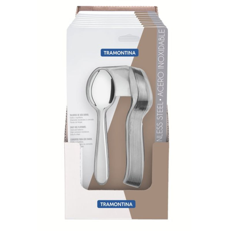 Conjunto Colheres Mesa Angra Tramontina Aço Inox 12 Peças Tramontina - - Colheres com bojo em formato simétrico e bordas cuidadosamente arredondadas, proporcionando maior conforto no uso. - Totalmente feitas de aço inox, altamente duráveis, mantêm suas características originais, preservando a beleza, a higiene e a durabilidade do material. - Acabamento em brilho, com detalhes no cabo. - Próprias para uso diário combinam com qualquer ambiente. - Podem ser lavadas diariamente na máquina de lavar louças. Características Gerais do Produto: Garantia: • 90 dias de garantia legal para defeitos de fabricação
