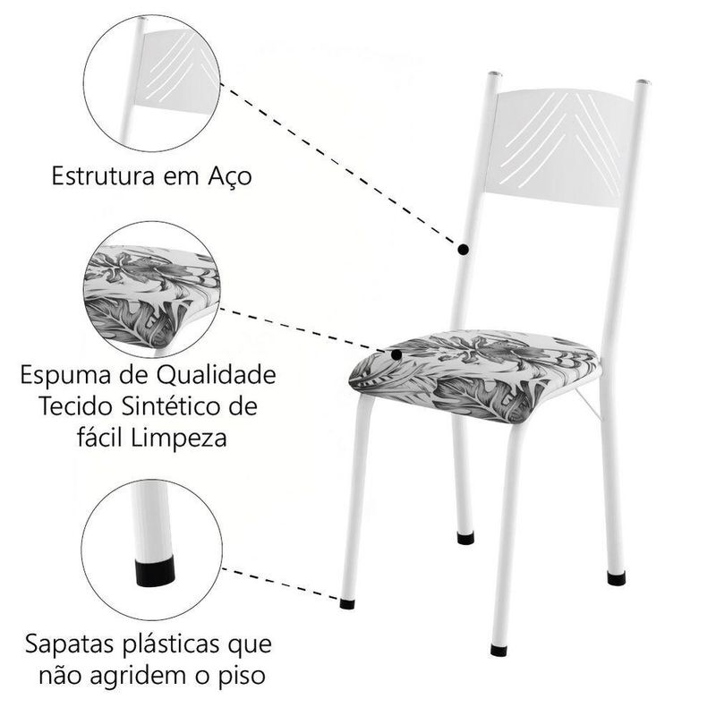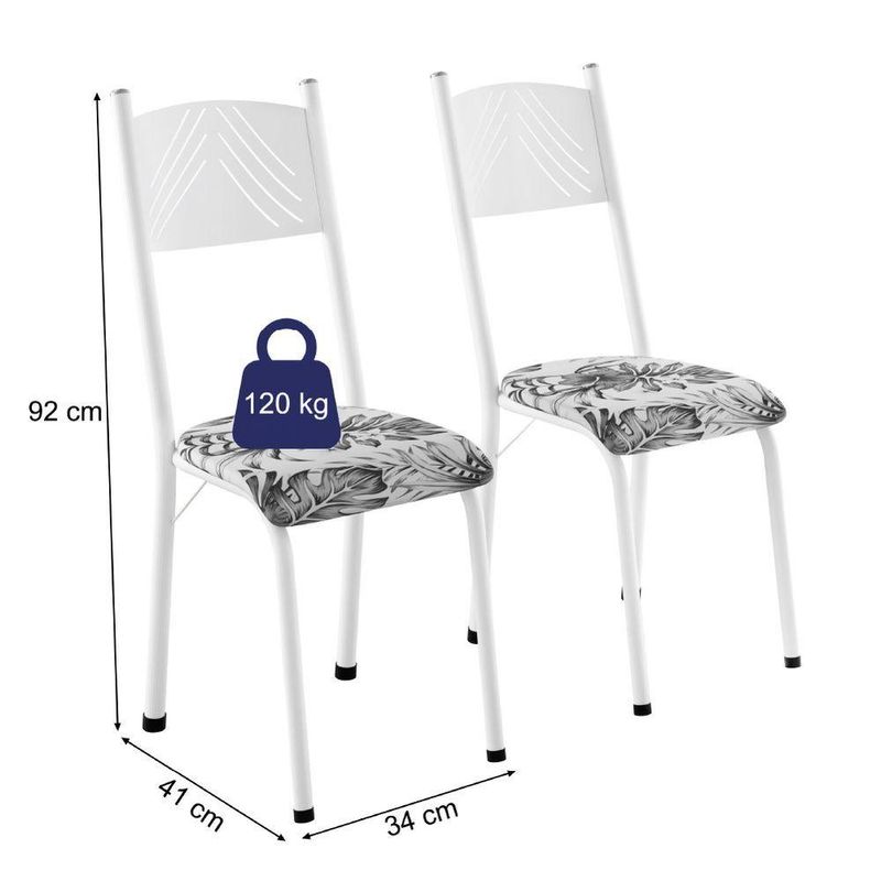 Conjunto Com 2 Cadeiras Liz Artefamol Branco FlorO conjunto de 2 cadeiras Liz Artefamol é perfeito para você deixar sua cozinha ou área gourmet mais aconchegante para receber visitas, produzido com material de qualidade. Possui sua estrutura em aço, com tecido Sintético de fácil limpeza tornando assim mais resistentes e duráveis, deixando o ambiente mais sofisticado.MEDIDAS:[ A ] = 92 cm[ L ] = 34 cm[ P ] = 40 cmPESO: 2,36 kg cadaSUPORTA ATÉ: 120 KgMODELO: Conjunto Com 2 Cadeiras LizMARCA: ArtefamolMATERIAL: AçoTECIDO: SintéticoDENSIDADE DA ESPUMA: D10PÉS: 4POSSUI SAPATAS: SimMATERIAIS DA SAPATA: PlásticoITENS INCLUSOS: 2 CadeirasINSTRUÇÕES E CUIDADOS: Não utilizar produtos abrasivos e esponjas de aço; não molhar; não deixar exposto ao tempo com chuva ou sol; utilizar apenas pano úmido.GARANTIA: 3 meses.Importante sobre a entrega: A entrega é realizada até a portaria ou porta de entrada do endereço indicado, desde que o acesso seja permitido. Para locais com portaria, a entrega será feita no piso térreo. Não realizamos montagem, desmontagem, transporte por escadas ou içamento. É responsabilidade do cliente verificar se as dimensões do produto são compatíveis com portas, elevadores e corredores. Evite imprevistos: confira todos os detalhes antes de concluir sua compra. MEDIDAS:: [ A ] = 92 cm [ L ] = 34 cm [ P ] = 40 cm | PESO:: 2,36 kg cada | SUPORTA ATÉ:: 120 Kg | MODELO:: Conjunto Com 2 Cadeiras Liz | MARCA:: Artefamol | MATERIAL:: Aço | TECIDO:: Sintético | DENSIDADE DA ESPUMA:: D10 | PÉS:: 4 | POSSUI SAPATAS:: Sim | MATERIAIS DA SAPATA:: Plástico | ITENS INCLUSOS:: 2 Cadeiras | INSTRUÇÕES E CUIDADOS:: Não utilizar produtos abrasivos e esponjas de aço; não molhar; não deixar exposto ao tempo com chuva ou sol; utilizar apenas pano úmido. | GARANTIA:: 3 meses | AVISO: Importante sobre a entrega: A entrega é realizada até a portaria ou porta de entrada do endereço indicado, desde que o acesso seja permitido. | Altura da cadeira: 92 | Inclui manual de montagem: Sim | Largura do assento: 34 | Profundidade do assento: 40 | Quantidade de cadeiras por conjunto: 2 | Requer montagem: Sim | Cor: Branco Flor