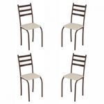 Conjunto Com 4 Cadeiras Maraba Marrom Assento Creme Teixeira Marrom Com CremeNada como ter os moveis certos para cada ambiente, nao e mesmo? Sua sala de jantar ou cozinha, vai ficar ainda mais linda com este Conjunto com de 4 cadeiras! Ideal para acomodar aos amigos de forma confortavel garantindo reunioes agradaveis ao redor da mesa, elas possuem um design classico e oferecem diversas possibilidades na hora de decorar o espaco.Dimensoes:Altura: 85 cm | Largura: 37 cm | Profundidade: 45 cmCaracteristicas:- Estrutura: Tubo de aco carbono 7/8 polegadas- Tipo do tecido: Corino- Assento: MDP 12 mm, espuma D8- Acabamento de pintura: Fosco- Possui sapatas- Suporte de peso: 100 kg- Garantia: 3 meses**Imagens ilustrativas. Objetos nao acompanham o produto.AVISO: Esclarecemos que a Opcao Moveis se responsabilizara pela entrega dos produtos adquiridos ate a porta de entrada ou portaria do endereco indicado, ou seja: e de total responsabilidade do cliente a montagem, desmontagem e instalacao do produto adquirido. Para evitar futuros desagrados ou imprevistos com a entrega, tambem e necessario que o cliente confira as dimensoes do produto escolhido, antes de finalizar a compra, devendo certificar-se de que a mercadoria passara normalmente por elevador, porta, escada e corredor.