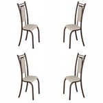 Conjunto Com 4 Cadeiras Paris Marrom Assento Creme Teixeira Marrom Com CremeNada como ter os moveis certos para cada ambiente, nao e mesmo? Sua sala de jantar ou cozinha, vai ficar ainda mais linda com este Conjunto com de 4 cadeiras! Ideal para acomodar aos amigos de forma confortavel garantindo reunioes agradaveis ao redor da mesa, elas possuem um design classico e oferecem diversas possibilidades na hora de decorar o espaco.Dimensoes:Altura: 105 cm | Largura: 38 cm | Profundidade: 45 cmCaracteristicas:- Estrutura: Tudo de aco carbono 1 ¼ Poleg- Tipo do tecido: Corino- Assento e encosto: Compensado de 9 mm, espuma D12- Acabamento de pintura: Fosco- Possui sapatas- Suporte de peso: 130 kg- Garantia: 3 meses**Imagens ilustrativas. Objetos nao acompanham o produto.AVISO: Esclarecemos que a Opcao Moveis se responsabilizara pela entrega dos produtos adquiridos ate a porta de entrada ou portaria do endereco indicado, ou seja: e de total responsabilidade do cliente a montagem, desmontagem e instalacao do produto adquirido. Para evitar futuros desagrados ou imprevistos com a entrega, tambem e necessario que o cliente confira as dimensoes do produto escolhido, antes de finalizar a compra, devendo certificar-se de que a mercadoria passara normalmente por elevador, porta, escada e corredor.