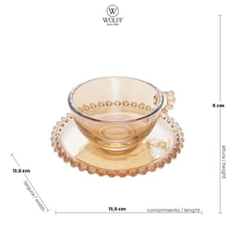 Nada combina tanto com os dias mais friozinhos do inverno do que tomar uma deliciosa bebida quente, que irá aquecer o corpo e revigorar a mente não é mesmo?! Melhor ainda se isso for jeito com esse incrível Conjunto de Xícaras Pearl da Wolff que irá tornar esse momento ainda mais gostoso e especial!Esse jogo de xícaras é perfeito para presentear quem ama apreciar um delicioso chá, ou um café fresquinho, um cremoso cappuccino, ou ainda, um chocolate quente encorpado! As xícaras possuem capacidade para 180 ml e poderão comportar qualquer bebida de sua preferência. Já os pires são práticos e funcionais, perfeitos para sobrepor as xícaras, alocar a colher de adoçar, ou ainda, para servir pequenos biscoitos, chocolates ou cookies.As peças possuem um design delicado, especialmente desenhado para agregar elegância e versatilidade em sua decoração, com uma estética translúcida que permite ver o conteúdo em seu interior, e lapidação de bolinhas inspirada na beleza e no brilho único das pérolas, adicionando um toque leve, sutil, e muito sofisticado para a composição de sua mesa.Além disso, a coleção Pearl da Wolff é fabricada em Cristal de excelente qualidade, que não mancha, não libera substâncias e não armazena odor. Esse material também é brilhante e cristalino, pois permite maior incidência de luz, proporcionando muito mais beleza, harmonia e estilo para o visual do conjunto.