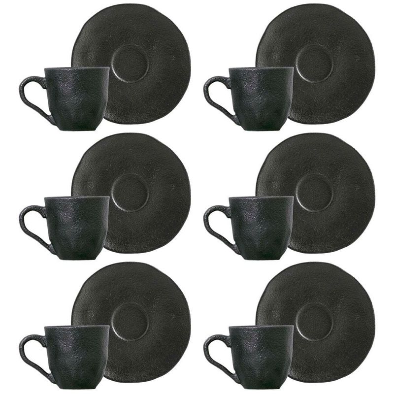 Conjunto com 6 Xícaras e Pires para Café Porto Brasil Carbon em Stoneware Preto - 120 ml