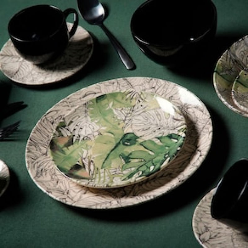 A linha Coup Exótica da Porto Brasil é inspirada na exuberância e mistério das densas florestas, e é perfeita para agregar elegância e sofisticação em sua mesa posta! As peças são fabricadas em Cerâmica Feldspática, um material durável e muito resistente, que pode ser levado à lava-louças, micro-ondas e geladeira, permitindo assim mais versatilidade no uso. Essa matéria prima recebe um revestimento em esmalte brilhante que ressalta os relevos e acentua seus detalhes e texturas, trazendo um lindo aspecto brilhante ao produto. Esse elegante conjunto é composto por seis xícaras e seis pires, com uma bela tonalidade e estampa com contrastes que exaltam a versatilidade das folhagens, permitindo muitas possibilidades de decoração para servir seus convidados.