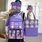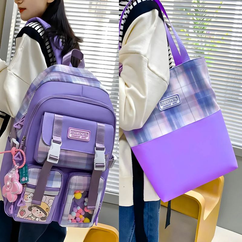 Conjunto Completo de Mochilas e Acessórios - Luxuoso e Versátil Descubra o Conjunto Luxuoso de Mochilas e Acessórios, projetado para atender às suas necessidades diárias com estilo e praticidade. Este conjunto inclui uma variedade de bolsas e mochilas, cada uma com design elegante e funcionalidade excepcional, ideal para diferentes ocasiões como viagens curtas, trabalho, compras, e uso acadêmico. O Conjunto Inclui: • Mochila Grande: Ideal para carregar itens essenciais como laptops, livros e cadernos. • Bolsa de Ombro Grande: Perfeita para uso diário ou como uma opção elegante para transporte adicional. • Bolsa com Cordão: Compacta e prática para levar pequenos itens ou usar como uma bolsa adicional em passeios. • Mini Bolsa de Ombro: Ideal para carregar o essencial com um toque de estilo. • Estojo de Lápis: Organize seus materiais escolares e de escritório de forma eficiente. Mochila Multiuso Simples: Adequada para várias finalidades, oferecendo uma solução prática e estilosa para o dia a dia. Características: • Material : Nylon • Design: A mochila escolar apresenta um design de cores contrastantes e vem com 2 bolsos externos transparentes que podem ser personalizados de acordo com suas preferências. • Compartimentos: Vários compartimentos e bolsos para facilitar a organização de laptops, livros, tablets, óculos e celulares. • Versatilidade: Adequado para estudantes de ensino médio e universitário, ou para qualquer pessoa que valorize a combinação de estilo e funcionalidade. Observações: • Presente Ideal: Este conjunto é uma excelente opção de presente para aniversários, Natal e outras ocasiões especiais. • Cuidados: Para manter a qualidade do material, limpe as mochilas e acessórios com um pano úmido e evite a exposição prolongada a ambientes úmidos. Aproveite a combinação perfeita de elegância e praticidade com o Conjunto Luxuoso de Mochilas e Acessórios. Ideal para quem busca estilo, funcionalidade e organização em seu dia a dia. As imagens são ilustrativas, considere o que vem na caixa como o produto original.