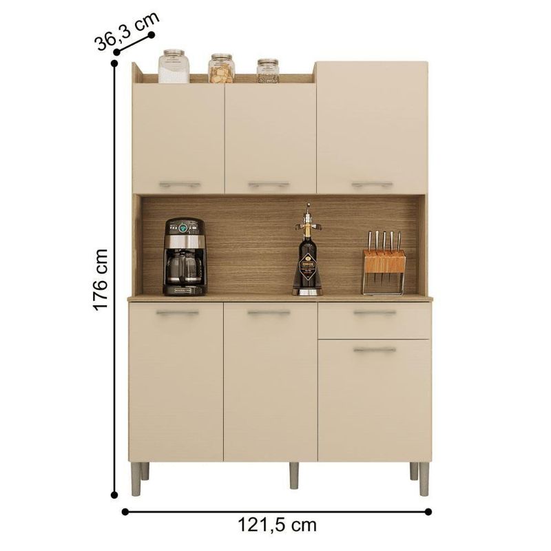 Conjunto Cozinha C/ Portas E Gavetas Verona Freijó / VanillaO Armário irá se tornar o charme de sua cozinha, seu design diferenciado dispõe de um nicho para decoração superior podendo ser utilizado para vasos, flores e outros. Tem a sua disposição de um grande espaço para Eltrodomésticos podendo acomodar um micro-ondas, sua matéria prima valoriza o meio ambiente sendo feita de madeira de reflorestamento. Com acabamento fosco e textura sensível ao toque em vários padrões mordernos.A estrutura do produto é produzida em MDP de 12mm. Portas, frente de gaveta e tampo são em MDP de 15mm. - Contém puxadores ergonômicos , dobradiças e corrediças 100% metálicas, prateleiras internas, pés fixos em plástico resistente e acabamento em pintura com secagem em luzes UV.Informações do produto:Altura: 176 cmLargura: 121,5 cmComprimento: 36,3 cmPortas: Sim (6)Gavetas: Sim (1)Prateleiras: Sim (3)Nichos: NãoPés: Sim (5)Cor: Freijó VanillaItens inclusos:01 ArmárioKit completo para montagem e manual de instruçõesGarantia: 3 meses.Informações Complementares:- Verificar o tamanho e detalhes do produto antes da compra.- Fotos meramente ilustrativa.- A transportadora entregará o produto no andar térreo do endereço de entrega.- Avaliar a mercadoria no ato do recebimento e recusar em caso de divergência ou avarias.- Não nos responsabilizamos pela montagem e desmontagem do produto no ato da entrega e devolução, assim como os custos gerados nestas situações.- Sugerimos a contratação de um montador profissional para a montagem do produto. Não nos responsabilizamos por avarias causadas no ato da montagem. Tipo de Cama/Cabeceira: Padrão | Num. Volumes: 2 | REQUIRES_ASSEMBLY: Sim | Width: 64 | Modelo: Verona | Color: Marrom | Height: 184 | Weight: 453.0 | Material para Filtro: MDP | Fabricante: Mobiliar Home Shop | Length: 125 | Peso Produto Com Embalagem (Kg): 45,3 | Tonalidade (Leroy): Marrom | Comprimento Produto com Embalagem (cm): 125,8 | Largura Produto com Embalagem (cm): 64,3 | Altura do Produto com Embalagem (cm): 184