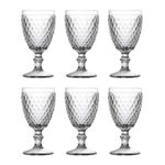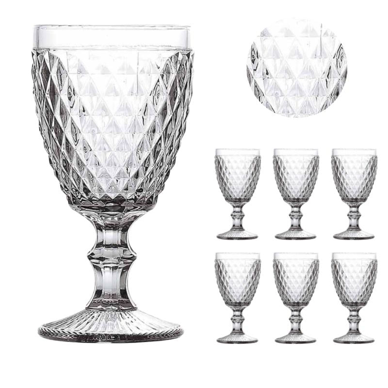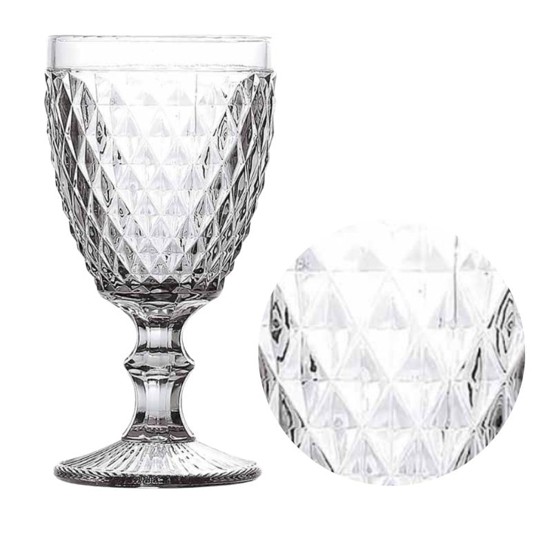 Conjunto de 06 Copos de Vidro 325ml Taça Bico de Abacaxi ===================================== Este conjunto elegante é composto por 6 taças produzidas em vidro de alta qualidade, com acabamento em relevo no clássico estilo "bico de abacaxi". Ideal para servir água, sucos, drinks, Milk Shake, Vitaminas ou vinhos com sofisticação e charme. O design retrô com detalhes em alto-relevo oferece um toque decorativo refinado à mesa, combinando com diferentes estilos de decoração e ocasiões, desde o uso diário até jantares especiais. A base é firme e estável, proporcionando segurança durante o uso. Fácil de limpar, o conjunto também pode ser utilizado em lava-louças, oferecendo mais praticidade no dia a dia. ===================================== Contém: 06 Copos (taça) Especificações: - Material: Vidro - Medida: 16,5cm x 8,5cm (cada) - Capacidade: 325ml (cada) - Textura: Bico de Abacaxi ===================================== Devido à diferença entre monitores e iluminação diferentes, pode haver variação na tonalidade apresentada no anúncio. Medidas muito aproximadas.
