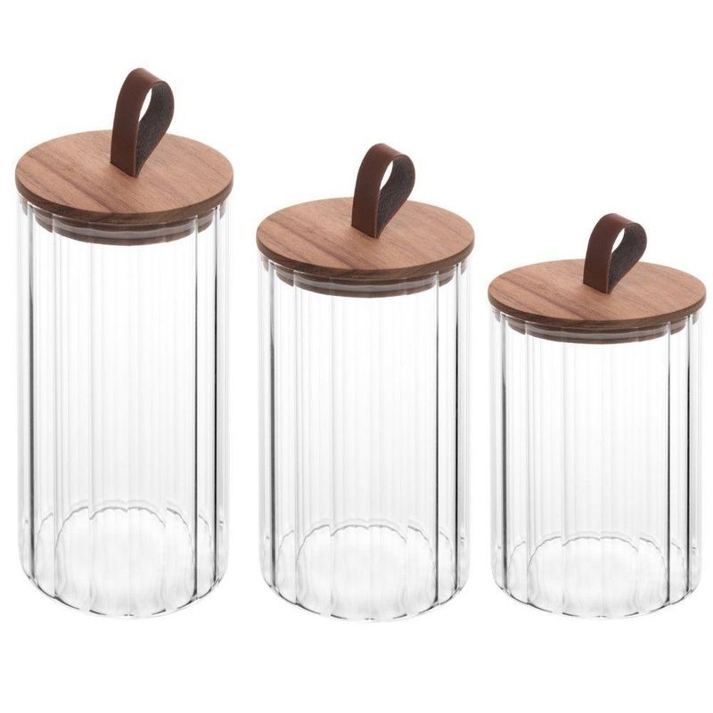 Conjunto De 3 Potes De Vidro Canelado Com Tampa Hermética De Acácia WolffConjunto de 3 Potes de Vidro Canelado com Tampa Hermética de Acácia WolffOrganização com elegância que transforma sua bancada!O Conjunto com 3 Potes de Vidro Canelado Wolff é ideal para armazenar mantimentos com praticidade e estilo. Produzidos em vidro com acabamento canelado, agregam textura e sofisticação à cozinha. As tampas herméticas em madeira de acácia ajudam a conservar os alimentos por mais tempo. Uma solução funcional que une beleza e eficiência no dia a dia.Conjunto de 3 Potes de Vidro Canelado com Tampa Hermética de Acácia Wolff - Especificações TécnicasMaterial: Vidro borossilicato caneladoMaterial da Tampa: Madeira acáciaQuantidade: 03 Conjunto de 3 Potes de Vidro Canelado com Tampa Hermética de Acácia Wolff - Itens Inclusos01 Pote (Diâmetro x Altura): 9,3 x 10 cm / capacidade: 560 ml01 Pote (Diâmetro x Altura): 9,3 x 16 cm / capacidade: 880 ml01 Pote (Diâmetro x Altura): 9,3 x 22 cm / capacidade: 1,2 L