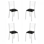 Conjunto De 4 Cadeiras Rio Liso Branco Assento Preto Lirio Teixeira Branco/pretoProcurando conforto? Adquira ja as cadeiras Rio da Teixeira. Organize sua cozinha com qualidade e elegancia!Dimensoes:Altura: 85 cm | Largura: 37 cm | Profundidade: 41 cmCaracteristicas:- Estrutura: Tubo de aco carbono 7/8 polegadas- Tipo do tecido: Corino- Assento: MDP 12 mm, espuma D8- Acabamento de pintura: Brilhante- Possui sapatas- Suporte de peso: 100 kg cada- Garantia: 3 meses**Imagens ilustrativas. Objetos nao acompanham o produto.AVISO: Esclarecemos que a Opcao Moveis se responsabilizara pela entrega dos produtos adquiridos ate a porta de entrada ou portaria do endereco indicado, ou seja: e de total responsabilidade do cliente a montagem, desmontagem e instalacao do produto adquirido. Para evitar futuros desagrados ou imprevistos com a entrega, tambem e necessario que o cliente confira as dimensoes do produto escolhido, antes de finalizar a compra, devendo certificar-se de que a mercadoria passara normalmente por elevador, porta, escada e corredor.