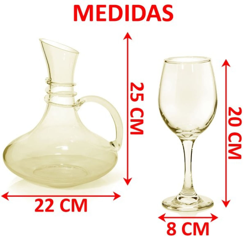 Conjunto De 6 Taças 320ml E Decanter 1,5L Em Vidro Gourmet - Elegância para Seu Vinho! Eleve sua experiência ao degustar vinhos com este sofisticado Conjunto de Taças e Decanter Gourmet! Perfeito para realçar os aromas e sabores da sua bebida favorita, este kit é ideal para jantares especiais, encontros com amigos ou até mesmo para presentear um amante de vinhos. Especificações: Material: Vidro; O produto é feito de vidro, manuseie com cuidado; Não deve usar no fogo direto; por favor não use esponja macia e neutra; Não use esfregão de aço inoxidável; Medidas: Decanter: Altura 25cm x Diâmetro 22cm x 1,5 Litros; Taças: Altura 20cm x Diâmetro 8cm x 320ml; Embalagem: 1 Conjunto De 6 Taças E Decanter Em Vidro; Características Gerais do Produto: • Material: Vidro • Modelo: Conjunto De Taças • Dimensões aproximadas: Decanter 25cm x 22cm / Taças 20cm x 8cm • Capacidade em litros: 320ml / 1,5L Garantia: • Garantia contra avarias no transporte