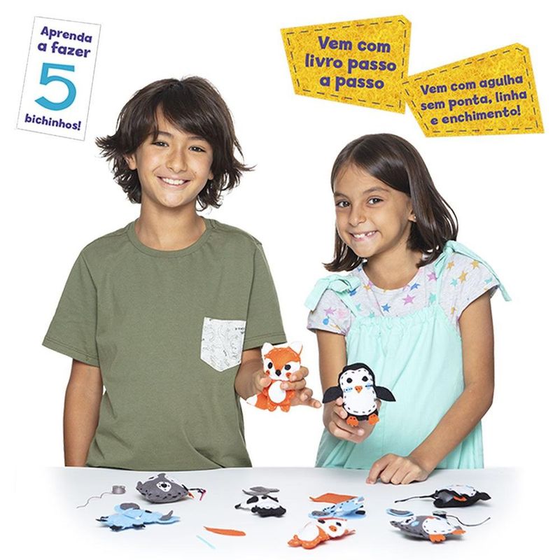 Conjunto de Atividades - Livro dos Bichinhos de Feltro - Colecao Fazendo Arte - 2711 - TOYSTERConjunto de Atividades - Livro dos Bichinhos de Feltro - Colecao Fazendo Arte - 2711 A linha Coré foi desenvolvida para estimular a criatividade, desenvolver o lado artístico e a coordenação das crianças A Coleção Fazendo Arte traz um incrível livrinho onde você vai aprender a criar cinco lindos bichinhos de feltro O livro ensina passo a passo como costurá-los O kit vem com o feltro, linha, agulha e enchimento inclusosDetalhes: Certificação: Certificado Pelos Órgãos Autorizados - OCP`S(Organismos De Certificação De Produtos) Registro: 012 154/2022 OCP 0006 Características: Conteúdo da Embalagem: 1 livro de instruções, feltro, linha de algodão Material/Composição: Felcro Código de Barras: 9786586215199 Ref: 2711 Marca: Toyster Modelo: Coré Idade Indicada: 8+ Aviso: As cores podem variar entre as imagens mostradas acima e o produto Imagens meramente ilustrativasGarantia: 3 Meses Contra Defeito de Fabricação