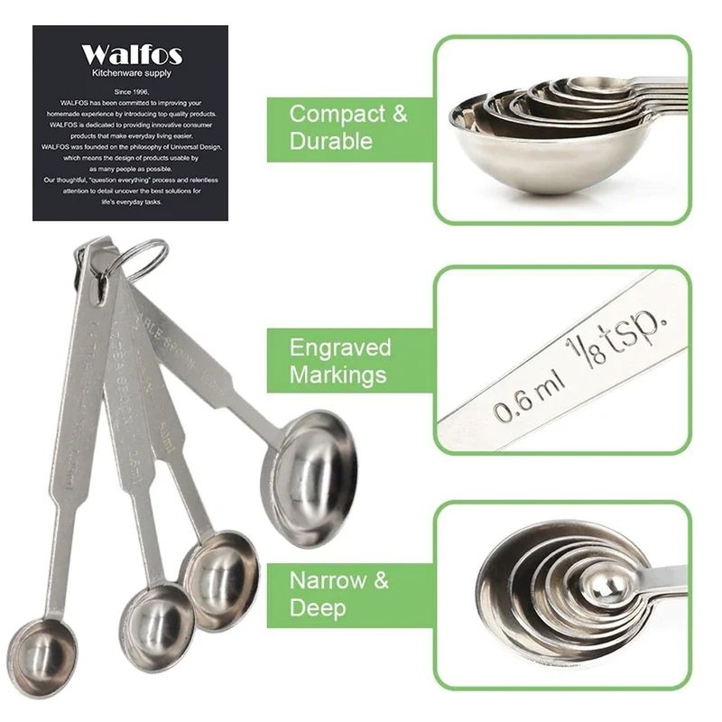 Nome da marca: walfos Origem: CN (Origem) Tipo de ferramentas de medição: Colheres de medida Característica: Abastecido Característica: Ecologicamente Sustentável Número do modelo: WCT00-B0478 Material: Metal Tipo de metal: STAINLESS STEEL Tipo: FERRAMENTAS DE MEDIÇÃO Certificado: EEC Certificado: CE/UE Certificado: SGS Certificado: CIQ Certificado: LFGB Temperature: -40F to +446F (-40c to +230c) Certification: Rohs,SGS,FDA,LFGB Material: Food grade stainless steel Shape: Spoon and Cups