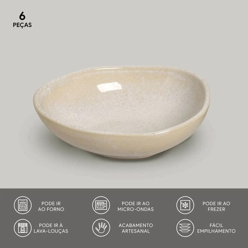 O conjunto de cumbucas oval Porto Brasil Orgânico Latte é a perfeita união entre estilo e funcionalidade. Um clássico atemporal para sua mesa Com um design clássico e acabamento em tom neutro, ele se adapta facilmente a qualquer estilo de mesa. Ideal para sopas, cremes, acompanhamentos ou sobremesas, as cumbucas de 265ml trazem sofisticação para o dia a dia ou ocasiões especiais, tornando cada refeição um momento especial.Qualidade artesanal e versatilidadeFabricadas em Stoneware, material de alta qualidade, essas cumbucas oferecem resistência e durabilidade superiores. Seu formato oval e acabamento texturizado com linhas suaves conferem um toque moderno e refinado. Compatíveis com micro-ondas, forno e lava-louças, elas combinam praticidade e elegância, garantindo funcionalidade sem comprometer o charme.Peças autênticas e sustentáveis Além de belas e práticas, as cumbucas são produzidas de maneira sustentável, utilizando matérias-primas naturais e processos responsáveis. Cada peça é única, com variações que destacam o trabalho artesanal. Seja para o dia a dia ou celebrações, esse conjunto transformará a sua mesa, tornando a experiência de servir e saborear os alimentos mais requintada.