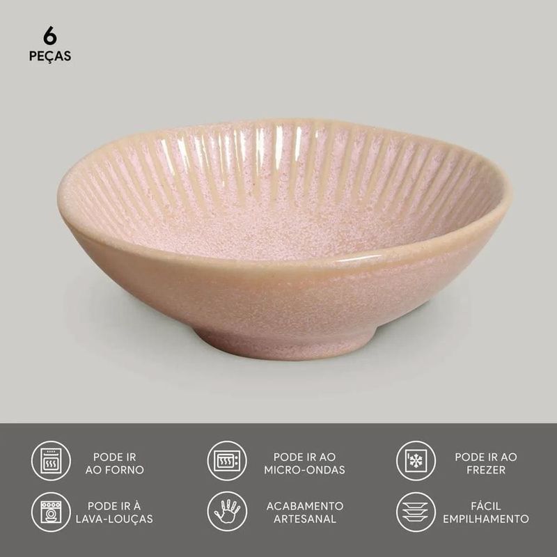 O conjunto de cumbucas Porto Brasil Linhas Litchi é a escolha perfeita para quem deseja adicionar charme e sofisticação à mesa. Inspirado na textura da casca do lichi, esse conjunto de 6 cumbucas de 370ml combina beleza e funcionalidade, sendo ideal para servir sobremesas, petiscos ou molhos. Sua tonalidade rosa claro transmite delicadeza e romantismo, transformando qualquer momento em uma ocasião especial.Delicadeza e elegância em cada refeiçãoEssas cumbucas se destacam pelo acabamento texturizado que remete à casca da fruta, trazendo um visual único e sofisticado. Feitas em Stoneware, um material cerâmico renomado por sua resistência e durabilidade, as peças não apenas encantam pela estética, mas também oferecem praticidade para o uso diário. Seja em jantares informais ou eventos especiais, elas elevam a experiência gastronômica.Excelência que encanta e duraComo todos os produtos da Porto Brasil, esse conjunto de cumbucas reflete o compromisso da marca com a qualidade e inovação. O cuidado artesanal no design, aliado à resistência do Stoneware, garante que as peças permaneçam impecáveis ao longo do tempo. Escolher a Porto Brasil é investir em produtos que combinam estilo, funcionalidade e durabilidade.