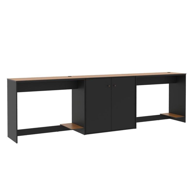Conjunto De Escritório 3 Peças Tech Office 2 Mesas E 1 Apara - Preto E Cedro Preto E CedroO Conjunto de Escritório Tech Office é compacto e funcional, ideal para ambientes profissionais e home office. Contando com sua Escrivaninha com passa fios e suporte para CPU e o Buffet Aparador com 2 Portas e dobradiças metálicas, todos com tampo em MDF usinado e sapatas de PVC, unindo design moderno e praticidade. Confira a linha Tech completa em nossos anúncios e transforme seu espaço com inteligência e estilo!Especificações Técnicas do Conjunto de Escritório Tech Office:- Material: MDP;- Tampo: MDF usinado;- Acabamento: Pintura UV;- Produto Precisa de Montagem? Sim;- de Portas: 2;- de Gavetas: Não possui;- de Prateleiras: Não possui;- Puxadores: PVC;- Dobradiças: Metálicas;- Pés: Sapatas Fixas de PVC;- Instruções de Cuidado: Limpar com pano levemente umedecido;- Medidas do Buffet Aparador (Altura x Largura x Profundidade): 73,5 x 76,6 x 38,4 cm;- Medidas da Escrivaninha (Altura x Largura x Profundidade): 73,5 x 91 x 38,4 cm;- Conteúdo da Embalagem: 02 Escrivaninha e 01 Buffet Aparador - Entregue em: 3 Volumes.Observações Importantes:Produto não deve ficar exposto diretamente ao sol, calor e umidades excessivas.Recomendações de Limpeza: Utilize somente pano seco ou levemente umedecido.Imagens meramente ilustrativas, produto não acompanha objetos de decoração e eletrônicos.Ao receber, verifique a embalagem. Se detectar ou violação na mesma, recuse o e nos contate.Não nos responsabilizamos pela montagem e por problemas causados pela montagem realizada por você ou montador contratado.Enfatizamos a recomendação aos nossos clientes de contratar um montador .Eventualmente, se faltar qualquer peça ou acessório no produto, nos contate e enviaremos a peça/acessório sem custo adicional. Altura da Mesa (cm): 74cm | Altura do Aparador (cm): 74cm | Largura da Mesa (cm): 91cm | Largura do Aparador (cm): 77cm | Profundidade da Mesa (cm): 38cm | Profundidade do Aparador (cm): 38cm | Altura dos Pés (cm): Não se aplica | Ambiente Principal: Escritório | Complexidade da Montagem: Média: pode ser montado por mais de uma pessoa e/ou necessite de maior conhecimento para montagem | Cor do Produto: Off White/Cedro | Cor Predominante: Off White | Cor Interna: Off White | Acabamento: Pintura UV | Acabamento da Gaveta: Não se aplica | Acabamento dos Pés: PVC | Escala de Brilho: Fosco | Escala de Brilho da Gaveta: Não se aplica | Possui Gavetas: Não | Garantia: 3 meses | Possui Nichos: Não | Bandeja: Não | Estilo: Moderno | Possui Rodízio: Não | Itens Inclusos: 2 Mesa, 1 Aparador, Manual de Montagem e Kits de Montagem | Linha ou Coleção: Tech | Inclui manual de montagem: Sim | Marca: ViaNossa | Material da Gaveta: Não se aplica | Material dos Pés: PVC | Material Principal: MDP/MDF | Necessita Montagem: Sim | Cor: Preto e Cedro