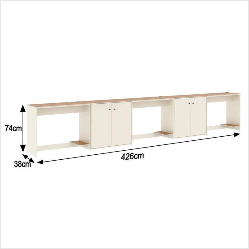 Conjunto De Escritório 5 Peças Tech Office 3 Mesas E 2 Apara - Off White E Cedro Off White E CedroO Conjunto de Escritório Tech Office é compacto e funcional, ideal para ambientes profissionais e home office. Contando com sua Escrivaninha com passa fios e suporte para CPU e o Buffet Aparador com 2 Portas e dobradiças metálicas, todos com tampo em MDF usinado e sapatas de PVC, unindo design moderno e praticidade. Confira a linha Tech completa em nossos anúncios e transforme seu espaço com inteligência e estilo!Especificações Técnicas do Conjunto de Escritório Tech Office:- Material: MDP;- Tampo: MDF usinado;- Acabamento: Pintura UV;- Produto Precisa de Montagem? Sim;- de Portas: 4;- de Gavetas: Não possui;- de Prateleiras: Não possui;- Puxadores: PVC;- Dobradiças: Metálicas;- Pés: Sapatas Fixas de PVC;- Instruções de Cuidado: Limpar com pano levemente umedecido;- Medidas do Buffet Aparador (Altura x Largura x Profundidade): 73,5 x 76,6 x 38,4 cm;- Medidas da Escrivaninha (Altura x Largura x Profundidade): 73,5 x 91 x 38,4 cm;- Conteúdo da Embalagem: 03 Escrivaninha e 02 Buffet Aparador - Entregue em: 5 Volumes.Observações Importantes:Produto não deve ficar exposto diretamente ao sol, calor e umidades excessivas.Recomendações de Limpeza: Utilize somente pano seco ou levemente umedecido.Imagens meramente ilustrativas, produto não acompanha objetos de decoração e eletrônicos.Ao receber, verifique a embalagem. Se detectar ou violação na mesma, recuse o e nos contate.Não nos responsabilizamos pela montagem e por problemas causados pela montagem realizada por você ou montador contratado.Enfatizamos a recomendação aos nossos clientes de contratar um montador .Eventualmente, se faltar qualquer peça ou acessório no produto, nos contate e enviaremos a peça/acessório sem custo adicional. Altura da Mesa (cm): 74cm | Altura do Aparador (cm): 74cm | Largura da Mesa (cm): 91cm | Largura do Aparador (cm): 77cm | Profundidade da Mesa (cm): 38cm | Profundidade do Aparador (cm): 38cm | Altura dos Pés (cm): Não se aplica | Ambiente Principal: Escritório | Complexidade da Montagem: Média: pode ser montado por mais de uma pessoa e/ou necessite de maior conhecimento para montagem | Cor do Produto: Off White/Cedro | Cor Predominante: Off White | Cor Interna: Off White | Acabamento: Pintura UV | Acabamento da Gaveta: Não se aplica | Acabamento dos Pés: PVC | Escala de Brilho: Fosco | Possui Gavetas: Não | Escala de Brilho da Gaveta: Não se aplica | Garantia: 3 meses | Possui Nichos: Não | Bandeja: Não | Possui Rodízio: Não | Estilo: Moderno | Itens Inclusos: 3 Mesa, 2 Aparador, Manual de Montagem e Kits de Montagem | Linha ou Coleção: Tech | Inclui manual de montagem: Sim | Marca: ViaNossa | Material da Gaveta: Não se aplica | Material dos Pés: PVC | Material Principal: MDP/MDF | Necessita Montagem: Sim | Cor: Off White e Cedro