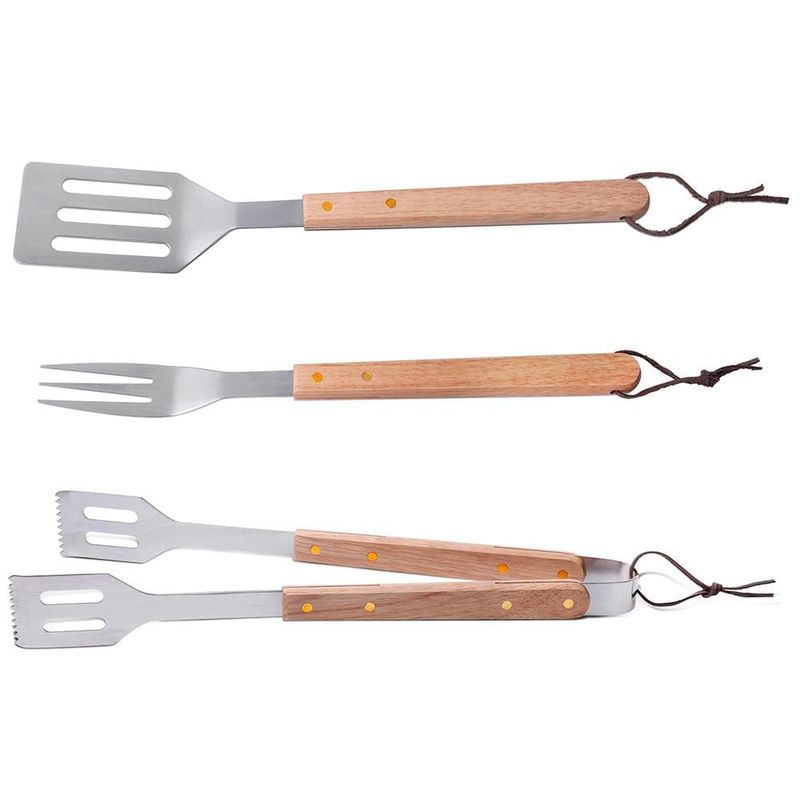 Acrescente mais praticidade e elegância aos churrascos com os amigos e a família, leve agora mesmo o Kit para Churrasco da Brinox. Contém 1 espátula, 1 pegador e 1 garfo com lâmina em aço inox e cabo de madeira que vão te ajudar no manuseio da carne na churrasqueira, bem como na hora de servir aos convidados. São peças essenciais, de qualidade e resistência que vão tornar os eventos ainda melhores.