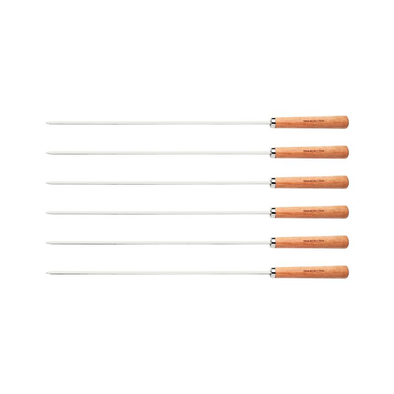Com o Conjunto de Espetinhos Tramontina em Aço Inox com Cabo de Madeira 50 cm 6 Peças da linha Churrasco você vai querer fazer churrasco todo dia. E não há problemas, com esse conjunto você poderá espetar e assar com tranquilidade. As peças são produzidas com lâminas de aço inox e cabos de madeira, proporcionando alta durabilidade e qualidade para o seu dia a dia. A escolha ideal para você tornar todo churrasco em uma ocasião especial.