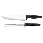 Faca prática ideal para você usar no dia a dia na cozinha ou caprichar nos seus churrascos. Com lâmina de aço inox polido garante mais eficiência e durabilidade e, com fio chanfrado apenas de um lado, se torna mais afiada. Já o cabo em polipropileno texturizado oferece mais segurança, estabilidade e conforto durante o uso. O Garfo auxilia no corte das carnes oferecendo muito mais praticidade. Leve agora mesmo esse ótimo conjunto da Brinox e inove a maneira de preparar suas deliciosas receitas.