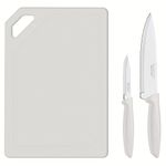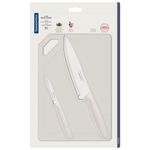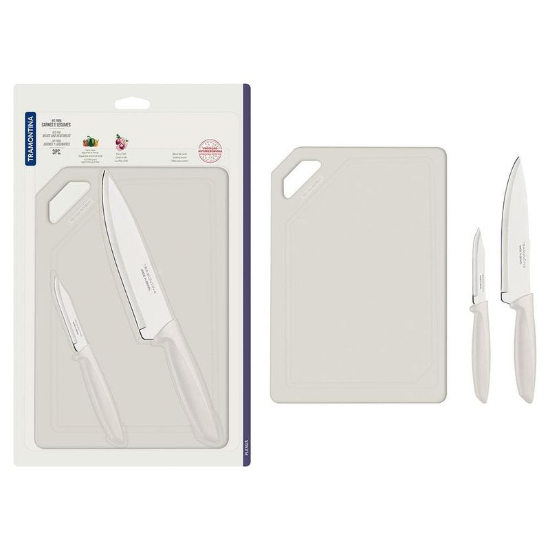 Diferentes alimentos exigem diferentes tipos de tratamento no momento do preparo de suas receitas, e por essa razão, ter em mãos utensílios específicos e de alta qualidade é o que tornará sua cozinha mais prática e eficiente. Pensando nisso, a Tramontina desenvolveu esse incrível Conjunto para Carnes e Legumes Plenus!Esse kit possui dois tipos diferentes de facas, perfeitas para descascar, cortar, fatiar e picar carnes, frutas, verduras e legumes, tudo de forma prática, rápida e eficiente. Elas são fabricadas em Aço Inoxidável de alta durabilidade e eficiência, garantindo um manuseio preciso e seguro, e contam com cabos em Polipropileno que se encaixam perfeitamente nas mãos, agregando conforto e leveza na utilização.Além disso, o conjunto acompanha uma eficiente tábua de corte em polipropileno com Proteção Antimicrobiana que inibe o crescimento de fungos e bactérias, proporcionando benefícios em higiene e redução de microrganismos que causam contaminação.Garanta agora mesmo os utensílios da Tramontina e tenha em casa uma gama maior de possibilidades no momento de cozinhar!