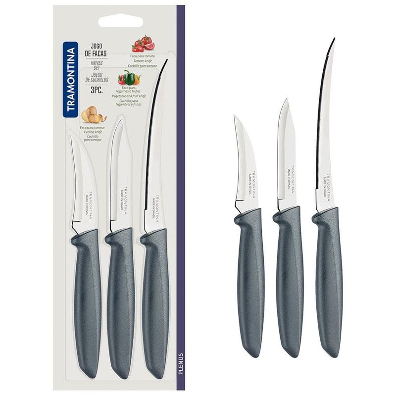 Conjunto de Facas Tramontina Plenus em Aço Inox e Polipropileno - Cinza - 3 Peças