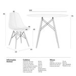 Conjunto De Jantar Eames: Mesa Redonda 100cm Preta + 6 Cadeiras Eiffel Dsw PretasConjunto de Mesa de Jantar Eames Eiffel Redonda 100cm Preto + 6 Cadeiras PretasO Conjunto de Mesa de Jantar Eames Eiffel se destaca pelo design icônico e acabamento de alta qualidade, trazendo sofisticação para seu ambiente. Com uma mesa redonda de 100cm de diâmetro e tampo em MDF preto, o conjunto oferece um toque contemporâneo e elegante para sua sala de jantar. A base da mesa e das cadeiras é em madeira maciça, garantindo resistência e durabilidade.As 6 cadeiras Eames Eiffel, com assento em policarbonato e base de madeira, proporcionam conforto e estilo. Ideal para quem busca um ambiente moderno e sofisticado, esse conjunto combina perfeitamente com diferentes estilos de decoração.Características do ProdutoTipo: Conjunto de Mesa de JantarModelo: Eames EiffelCor: PretoDimensõesMesaAltura: 76cmDiâmetro: 100cmMaterial do tampo: MDF com pintura impermeávelBase: Madeira maciçaCadeirasAltura: 85cmLargura: 47cmProfundidade: 50cmAssento x Chão: 45cmPeso máximo suportado por cadeira: 120kgContém1 Mesa Eames Eiffel 100cm6 Cadeiras Eames EiffelObservaçõesImagens meramente ilustrativas.