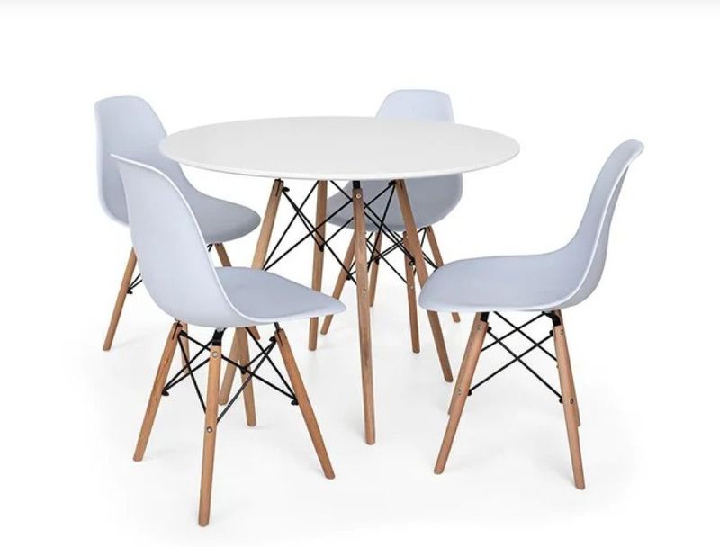 Kit Mesa Jantar Eiffel 80cm + 4 Cadeiras Charles EamesO Kit Mesa Jantar Eiffel 80cm + 4 Cadeiras Charles Eames são importantes itens para a sua decoração. Independente da proposta, a decoração da sua residência merece contar com artigos decorativos e móveis de altíssima qualidade. O Kit Mesa Jantar Eiffel 80cm + 4 Cadeiras Charles Eames possui um design exclusivo, belo e cheio de charme. Fabricado em materiais de elevada procedência, as cadeiras deste conjunto contam com um modelo especial, desenvolvido na metade do século passado pelo casal Eames. Estas cadeiras de curvatura ergonômica são chamadas também de cadeira DSW (Dining, Side, Wood).A inspiração deste casal rendeu excelentes frutos até os dias atuais. Hoje, elas são constituídas de materiais mais leves e resistentes. Tanto a base quanto o assento são feitos em polipropileno, vale ressaltar que o encosto e o assento são unidos formando uma curva perfeita que se adapta ao corpo, como resultado obtém-se uma cadeira superconfortável.As cadeiras são constituídas de polipropileno e madeira, estes materiais conferem muito mais resistência e segurança ao modelo. É preciso ressaltar que o conjunto é enviado ao endereço de entrega desmontado, isto é, embalado em caixa de papelão, no entanto, o conjunto vai acompanhado de um manual de montagem. Mas não se preocupe, pois o conjunto é de fácil montagem!Especificações Técnicas do Produto:Modelo: EiffelAltura da Mesa: 74,00 (cm)Comprimento da Mesa: 80,00 (cm)Largura da Mesa: 80,00 (cm)Altura Total da Cadeira: 82,00 (cm)Altura do Assento da Cadeira: 45,00 (cm)Largura Da Cadeira: 46,00 (cm)Profundidade da Cadeira: 54,00 (cm)Material da Estrutura da Cadeira: Madeira e MetalMaterial do Assento da Cadeira: PolipropilenoResistência: Aconselhável até 120,00 (Kgs)Produto Enviado: DesmontadoComplexidade de Montagem: FácilManual de Montagem: Acompanha o produtoGarantia: 03 Meses Contra Defeitos de Fabricação.Importante: Produto enviado desmontado acondicionado em caixa de papelão reforçada, acompanha manual de montagem.