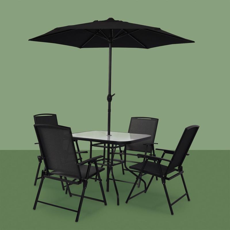 Conjunto De Jardim Mor Life Chicago Preto Com Guarda Sol Versatilidade e sofisticação são sinônimos do Conjunto Chicago da Mor! Ele é destinado a todos os ambientes, tanto internos, quanto externos, e vai ser uma excelente escolha para curtir os dias de calor com proteção, e servir um belo café da manhã ou chá da tarde para família e amigos. Além de ser lindo, o Conjunto Chicago é super resistente e durável, pois a mesa é produzida em aço com acabamento em pintura epóxi pó. As cadeiras tem a sua estrutura nos mesmos materiais da mesa, além da tela 70% PVC e 30% poliéster. Descrição do produto Marca: Mor Life Modelo: Chicago Cor: Preto Estrutura: Aço Tampo da mesa: Vidro temperado Sistema de abertura do ombreone: manivela Material: PVC | Poliéster Acabamento: Pintura epóxi pó Abertura do guarda-sol: Manivela FPS guarda-sol: 35 Dimensões da embalagem: 95,1cm (A) x 25cm (L) x 1,19m (C) Peso aproximado: 39,94 kg Conteúdo do Conjunto: Mesa: 90cm x 90cm x 71cm Cadeiras: 68cm x 58cm x 92,5cm Guarda-sol: 2,20m x 2,26m Haste: Ø31mm Imagens meramente ilustrativas, todos os itens que ambientam o produto não estão inclusos.
