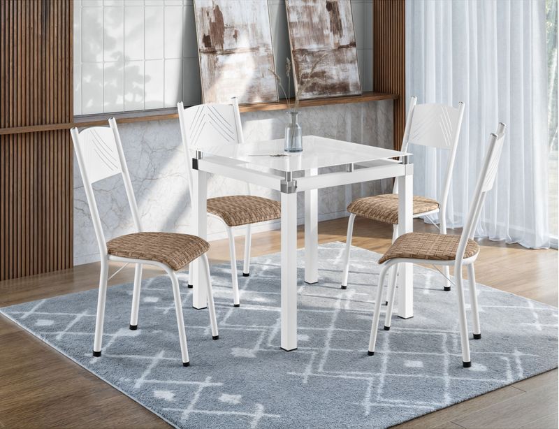 O Conjunto Artefamol Harpia é a escolha definitiva para quem busca praticidade e estilo no dia a dia. Com um design moderno e inteligente, este conjunto foi planejado para se adaptar perfeitamente a ambientes compactos, levando elegância e conforto para sua cozinha ou copa sem ocupar espaço desnecessário.A mesa conta com uma estrutura robusta em aço e um tampo de vidro temperado, que garante alta durabilidade e uma limpeza muito mais simples e rápida. Além disso, as cadeiras possuem acabamento em pintura epóxi eletrostática, oferecendo resistência superior contra o desgaste e mantendo o aspecto de novo por muito mais tempo.Para garantir o máximo bem-estar, os assentos são revestidos em courvin, material que une conforto e facilidade de higienização. O Conjunto Artefamol Harpia é a solução completa para quem não abre mão de um móvel resistente, funcional e com um visual sofisticado. Mesa com tampo de vidro temperado: Mais segurança, sofisticação e facilidade na limpeza. Cadeiras com estrutura em aço: Alta resistência e assento em courvin para maior conforto. Acabamento em pintura epóxi: Proteção extra contra corrosão e acabamento impecável. Design compacto e funcional: Otimização perfeita para espaços de 4 lugares. Estrutura reforçada: Qualidade garantida para suportar o uso intenso do cotidiano.