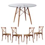 Conjunto De Mesa Eiffel Redondo Tampo De Madeira 90cm Branco Com 4 Cadeiras Cobre Assento Corano BegConjunto De Mesa Eiffel Redondo Tampo De Madeira 90cm Branco Com 4 Cadeiras Cobre Assento Corano BegA sua cozinha ou sala de jantar ficará completa com esse lindo Conjunto de Mesa e Cadeiras! Contendo um design de móveis moderno, elegante e com uma ousada combinação de cores em harmonia com o cobre, esse é um kit que certamente é uma solução que esbanja estilo, elegância e muito requinte.O conjunto tem em sua diversificada estrutura de materiais com altíssima qualidade, com acabamento em cobre, que proporciona muito mais resistência, mesmo com o passar dos anos, e com seus 4 assentos Katrina Aço é ideal para um jantar em família sem abrir mão do conforto. O Kit acompanha versatilidade e combina com vários tipos de decoração, o que dá mais praticidade em sua casa.Informações técnicas Conjunto:Conteúdo da Embalagem: 01 Mesa e 04 Cadeiras (Embalados Separadamente).Instruções/Cuidados: Limpar com pano seco ou levemente umedecido com água.Necessita de Montagem? Sim.Mesa:Modelo: Eiffel WoodTipo: Redonda Cor do tampo: Branco - VidroCor da base dos pés: CobreMaterial do tampo: MadeiraMaterial dos pés: MadeiraDimensões: Altura: 76 cm // Largura: 90 cm // Profundidade: 90 cm Cadeiras:Modelo: KatrinaCor: Cobre e BegeMaterial da estrutura: Aço CobreMaterial do assento: Espuma D14 com Revestimento em Corano.Dimensões: Altura: 90 cm // Largura: 50 cm // Profundidade: 55 cmConjunto de Mesa Eiffel Redondo Tampo de Madeira 90cm Branco com 4 Cadeiras Cobre Assento Corano Beg