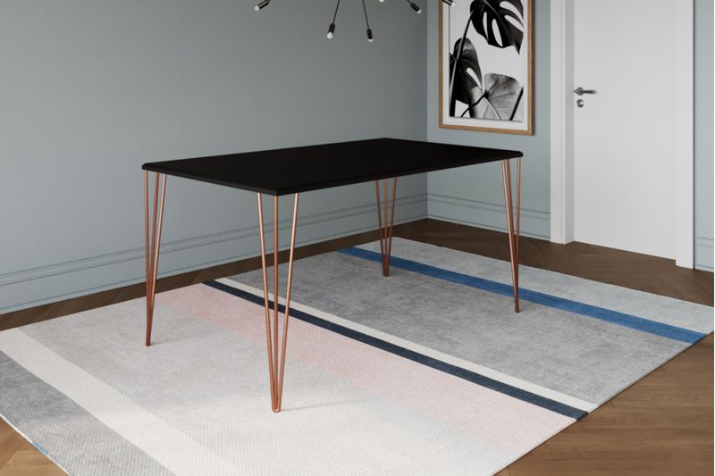 MóveisSala de JantarConjunto Sala de JantarConjunto De Mesa Elen Cobre Com Tampo Preto 150 Cm Com 6 Cadeira Katrina Cobre Assento Bege