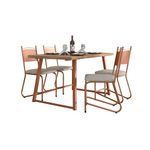 Leve mais sofisticação, conforto e resistência para sua sala de jantar com o Conjunto de Mesa Fabone Atlanta que combina Mesa Valência e 4 Cadeiras Marselha. Com design moderno e acabamento refinado, transforma qualquer espaço em um ambiente aconchegante e elegante.A mesa retangular tem estrutura robusta em aço carbono com pintura eletrostática e tampo de MDP 30mm, garantindo resistência e durabilidade no uso diário. Com medidas de 136x80cm, acomoda perfeitamente 4 pessoas com conforto. As cadeiras Marselha possuem estrutura metálica com assento estofado em espuma D14 e revestimento em corano sintético, unindo beleza e praticidade para o dia a dia. O encosto anatômico proporciona maior conforto durante as refeições. As sapatas plásticas protegem o piso e oferecem mais estabilidade.Mesa retangular com tampo em MDP de 30mmMesa suporta até80 kg4 cadeiras estofadas com espuma D14 e revestimento em coranoCadeira suporta até90 kgEstrutura em aço carbono com pintura eletrostáticaSapatas plásticas para proteção e estabilidadeDisponível em duas versões: Cobre ou Preto, o conjunto se adapta com estilo a diferentes ambientes, desde salas compactas até áreas gourmet.