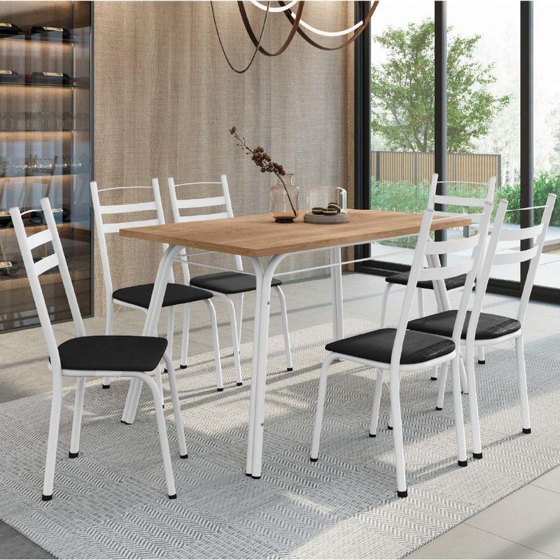 Conjunto De Mesa Sala De Jantar Com 6 Cadeiras Tubular Tampo Bp Madeirado Retangular 1,36m Branco / PretoO Conjunto de Mesa com 6 Cadeiras foi desenvolvido para trazer ainda mais beleza, conforto e praticidade ao seu lar. A mesa possui tampo retangular em BP resistente. Seu design combina elegância e funcionalidade, tornando o ambiente mais sofisticado. As cadeiras são estofadas com tecido sintético de fácil limpeza, unindo conforto no sentar com a praticidade do dia a dia. O acabamento proporciona toque macio e visual moderno, adaptando-se facilmente a diferentes estilos de decoração. A estrutura da mesa e das cadeiras é feita em aço de alta qualidade, garantindo estabilidade, resistência e longa durabilidade.MEDIDAS:Medidas da Mesa (Base + Tampo):[ A ] = 76 cm[ L ] = 80 cm[ P ] = 136 cmMedidas da Cadeira:[ A ] = 92 cm[ L ] = 34 cm[ P ] = 41 cmPESO MESA: 20,13 kg (Base + Tampo)PESO CADEIRA: 2,36 kgCADEIRAS SUPORTAM: 120 kgMESA SUPORTA: 40 kgCaracterísticasMODELO: Conjunto de Mesa Sala de Jantar Leia com 6 Cadeiras Tampo Retangular Madeirado 1,36m ArtefamolMARCA: ArtefamolTIPO DE PINTURA: EpóxiACABAMENTO: FoscoMATERIAL: Base e Cadeira de AçoESPESSURA DO TAMPO: 5 cmQUANTIDADE DE CADEIRAS: 6DENSIDADE DA ESPUMA DA CADEIRA: D10TAMPO MESA: MDPTECIDO CADEIRA: SintéticoPÉS: Sapatas de PlásticoITENS INCLUSOS: 1 Base, 1 Tampo e 6 CadeirasGARANTIA: 3 MesesA Esplanada Móveis se responsabiliza pela entrega dos produtos adquiridos até a porta de entrada ou portaria do endereço indicado, se a portaria do condomínio permitir, as entregas são efetuadas no piso térreo e é de responsabilidade do cliente a locomoção da mercadoria até seu apartamento ou casa.Confira as dimensões do produto e certifique-se de que estão adequadas aos elevadores, portas e corredores do local da entrega. Não fazemos a montagem, desmontagem do produto e/ou portas e janelas, transporte pela escada ou içamento pelo lado de fora do prédio. Não está incluso no serviço de entrega o deslocamento até o interior do apartamento, com ou sem elevador, ou deslocamento em locais de difícil acesso como escadarias.Caso o cliente necessite de entrega dentro das dificuldades mencionadas, deverá entrar em contato para análise e cotação do valor do serviço.Certifique-se de tudo antes de finalizar a compra, evitando assim futuros desagrados ou imprevistos com a entrega. Medidas da Mesa (Base + Tampo):: [ A ] = 76 cm [ L ] = 80 cm [ P ] = 136 cm | Medidas da Cadeira:: [ A ] = 92 cm [ L ] = 34 cm [ P ] = 41 cm | CADEIRAS SUPORTAM:: 120 kg | MODELO:: Conjunto de Mesa Sala de Jantar Leia com 6 Cadeiras Tampo Retangular Madeirado 1,36m Artefamol | MARCA:: Artefamol | TIPO DE PINTURA:: Epóxi | PESO MESA:: 20,13 kg (Base + Tampo) | PESO CADEIRA:: 2,36 kg | MESA SUPORTA:: 40 kg | QUANTIDADE DE CADEIRAS:: 6 | DENSIDADE DA ESPUMA DA CADEIRA:: D10 | ACABAMENTO:: Fosco | MATERIAL:: Base e Cadeira de Aço | ESPESSURA DO TAMPO:: 5 cm | TAMPO MESA:: MDP | TECIDO CADEIRA:: Sintético | PÉS:: Sapatas de Plástico | ITENS INCLUSOS:: 1 Base, 1 Tampo e 6 Cadeiras | GARANTIA:: 3 Meses | AVISO:: A Esplanada Móveis se responsabiliza pela entrega dos produtos adquiridos até a porta de entrada ou portaria do endereço indicado, se a portaria do condomínio permitir, as entregas são efetuadas no piso térreo e é de responsabilidade do cliente a locomoçã | ALTURA:: 92cm | AMBIENTE RECOMENDADO:: Cozinha | FORMA:: Retangular | MANUAL DE MONTAGEM:: Incluso | MATERIAL DO TAMPO:: Madeira | EMBALAGEM:: 5 Volumes | MONTAGEM:: Necessita Montagem | Cor: Branco / Preto