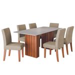 Conjunto De Mesa Sala De Jantar Ripada Santiago 1,80m 6 Cadeiras Creta Dobuê Madeirado / BegeO conjunto de mesa Santiago 1,80m com 6 cadeiras Creta é a escolha perfeita para cozinhas e salas de jantar que buscam conforto e estilo. A mesa conta com tampo em MDF de alta qualidade e base dupla ripada, que proporciona um visual elegante e atual, transformando o ambiente com um toque de modernidade e sofisticação. As cadeiras oferecem assento e encosto acolchoado e revestido com tecido Veluplus de alta qualidade, a cadeira oferece toque macio e durabilidade excepcional. Feita com materiais resistentes e fáceis de limpar, garantindo maior durabilidade e resistência.MEDIDAS:Medidas Mesa:[ A ] = 80 cm[ L ] = 180 cm[ P ] = 90 cmMedidas Cadeiras (cada):[ A ] = 92 cm[ L ] = 42 cm[ P ] = 60 cmPESO MESA: 50,40 KgPESO CADEIRA: 7,25 Kg (cada)PESO SUPORTADO MESA: 20 Kg (distribuídos)PESO SUPORTADO CADEIRA: 110 Kg cadaMODELO: Conjunto de Mesa Sala de Jantar Ripada Santiago 1,80m 6 Cadeiras CretaMARCA: DobuêESTRUTURA: MDFACABAMENTO MESA: Pintura UVACABAMENTO CADEIRA: VeluplusTECIDO DA CADEIRA: VeluplusREVESTIMENTO ASSENTO E ENCOSTO DA CADEIRA: Espuma D20MATERIAL DO TAMPO: MDFPÉS DA CADEIRA: Sapatas PlásticasDIFERENCIAL: Material em MDF de alta resistência, mesa com base ripada, cadeiras com assento e encosto acolchoados, tecido veluplus.SISTEMA DE MONTAGEM: Parafusos e porcas cilíndricasITENS INCLUSOS: 1 Mesa e 6 cadeiras, 1 manual de montagem e 1 kit parafusosINSTRUÇÕES E CUIDADOS: Limpar com pano levemente umedecido com água, não utilizar produtos abrasivosGARANTIA: 3 meses pelo fabricanteA Esplanada Móveis se responsabiliza pela entrega dos produtos adquiridos até a porta de entrada ou portaria do endereço indicado, se a portaria do condomínio permitir, as entregas são efetuadas no piso térreo e é de responsabilidade do cliente a locomoção da mercadoria até seu apartamento ou casa.Confira as dimensões do produto e certifique-se de que estão adequadas aos elevadores, portas e corredores do local da entrega. Não fazemos a montagem, desmontagem do produto e/ou portas e janelas, locomoção pela escada ou içamento pelo lado de fora do prédio. Não está incluso na entrega o deslocamento até o interior do apartamento, com ou sem elevador, ou deslocamento em locais de difícil acesso como escadarias.Caso o cliente necessite de entrega dentro das dificuldades mencionadas, deverá entrar em contato para análise e dúvidas.